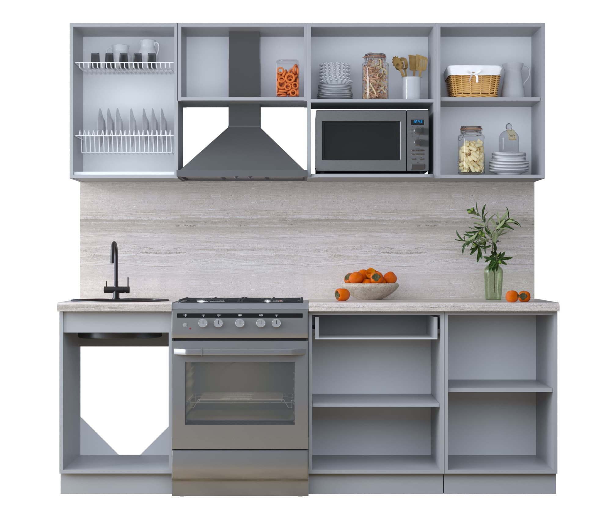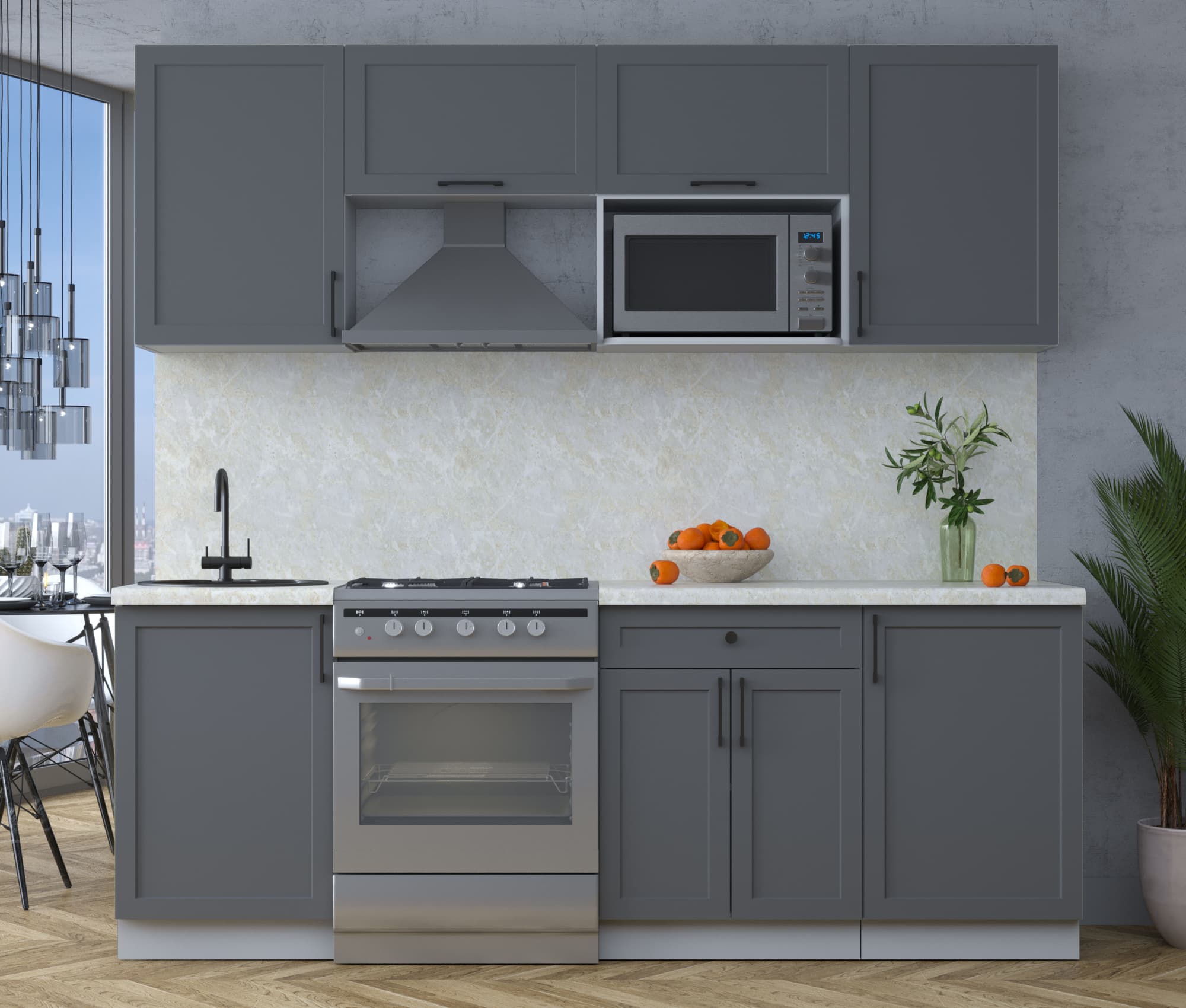 ГОТОВАЯ КУХНЯ ТРЕНД SOFT-TOUCH 2,2В (ПЕПЕЛ/ ПЕПЕЛ) - Yuta.by