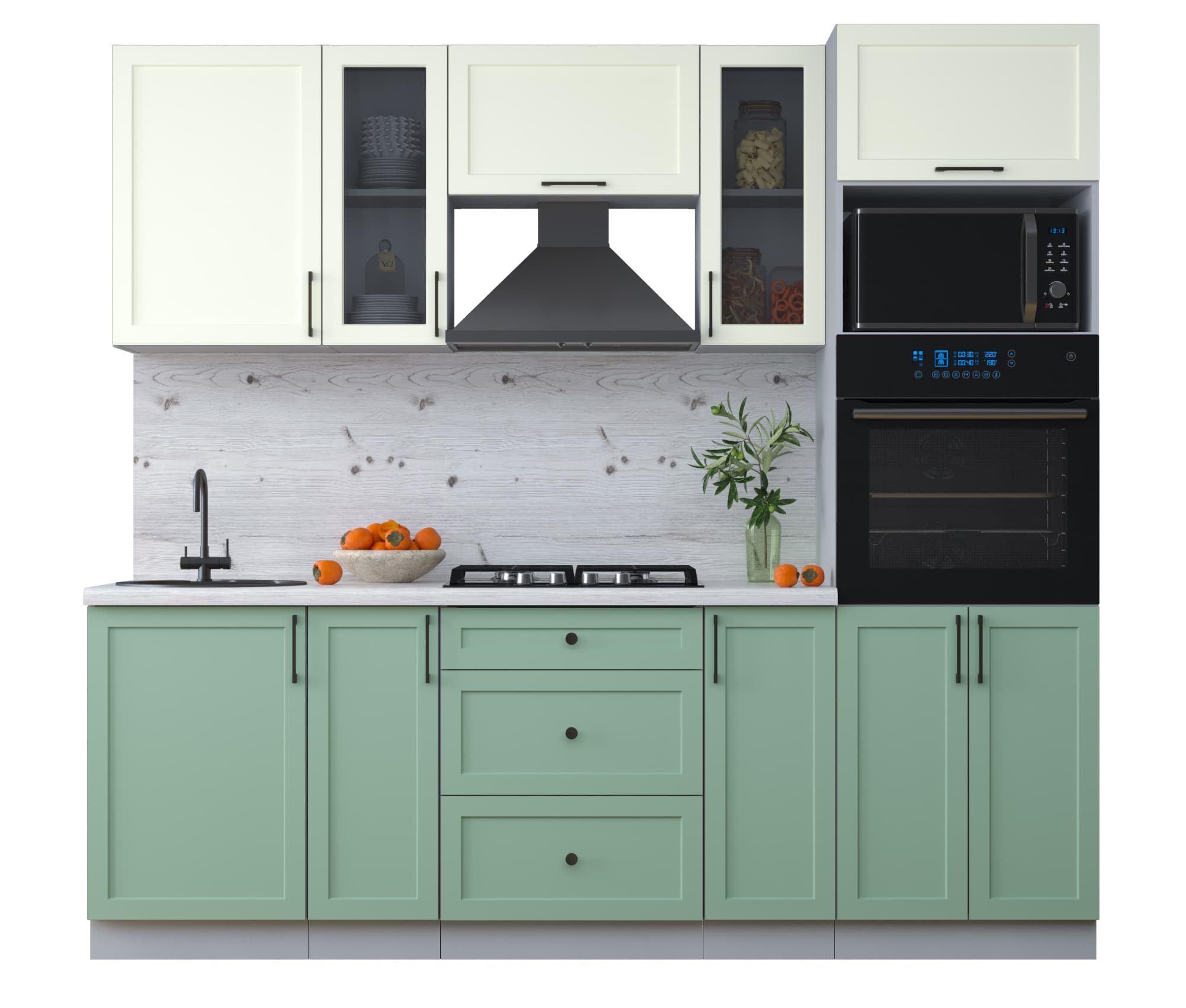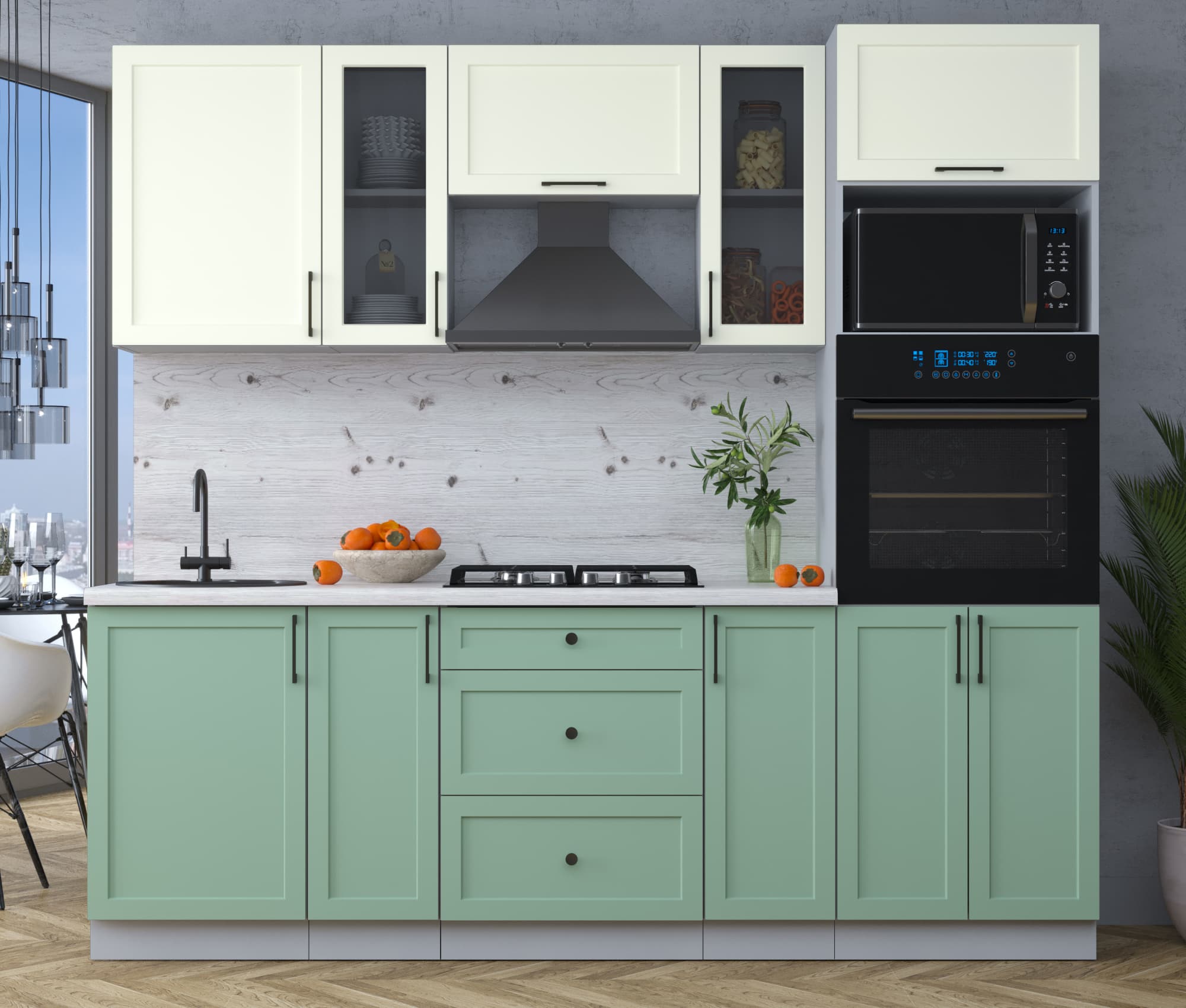 ГОТОВАЯ КУХНЯ ТРЕНД SOFT-TOUCH 2,3В (БЕЛЫЙ/ МЯТА) - Yuta.by