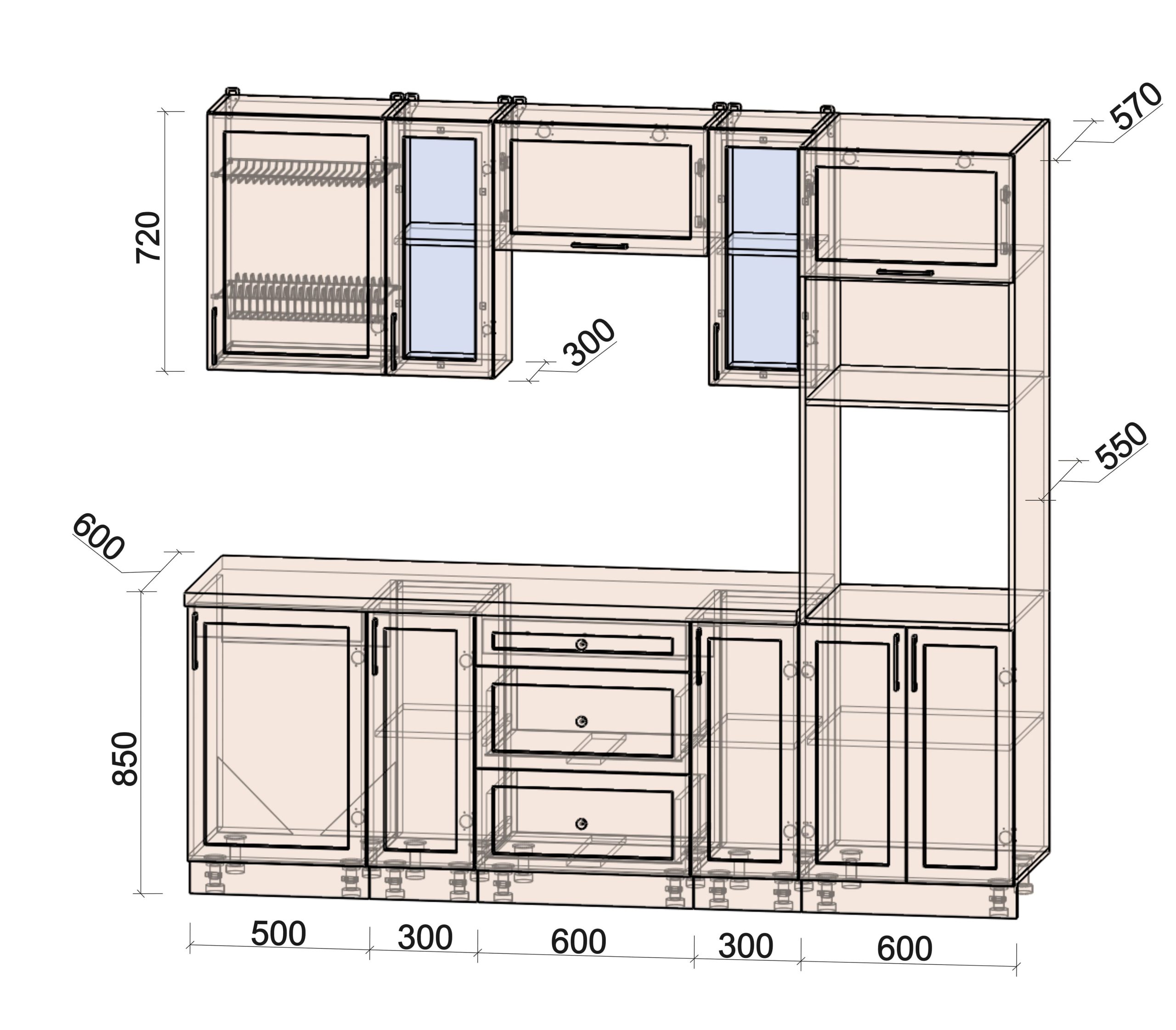 • шкаф нижний под духовой шкаф шириной 600 мм;