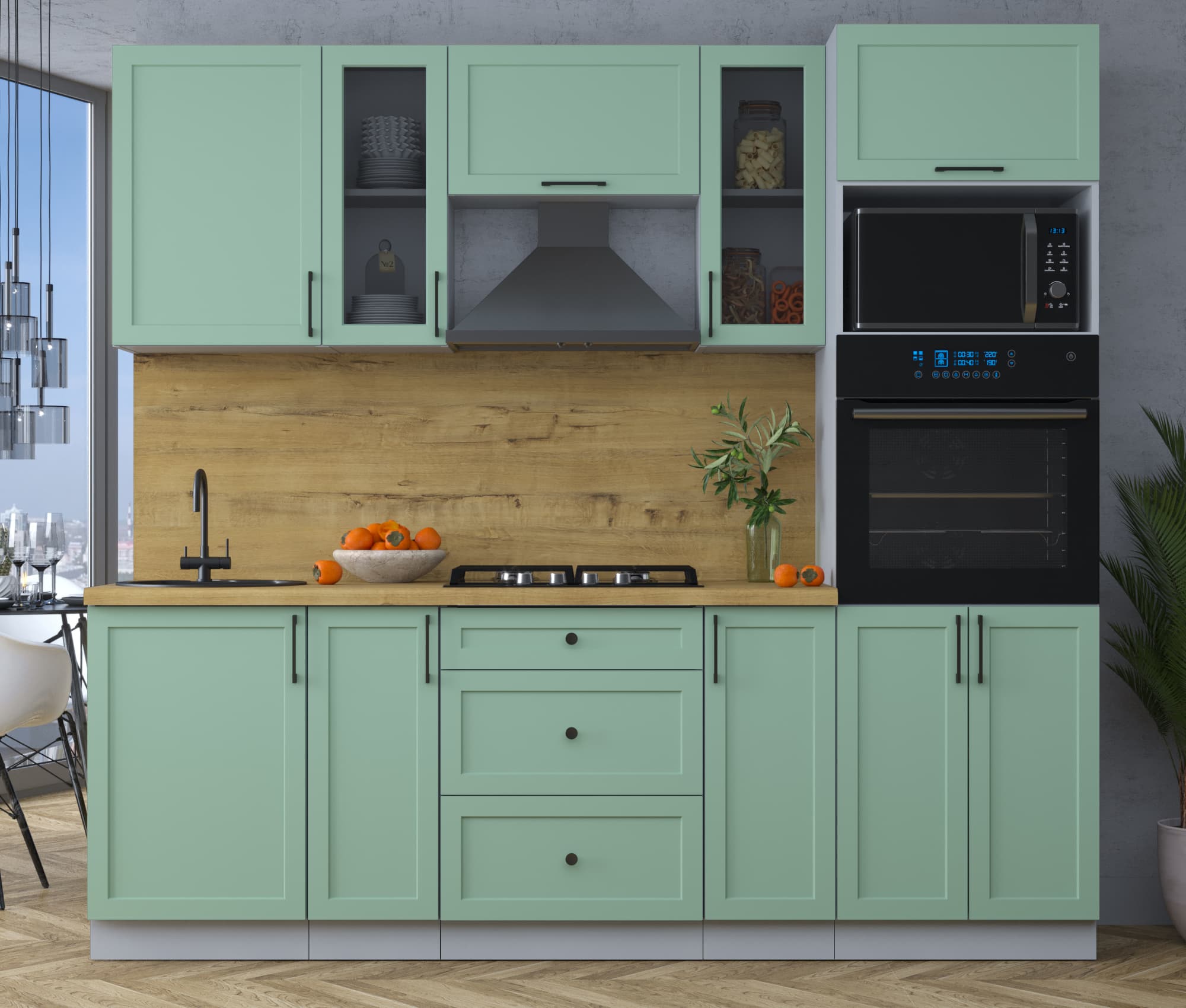 ГОТОВАЯ КУХНЯ ТРЕНД SOFT-TOUCH 2,3В (МЯТА/ МЯТА) - Yuta.by
