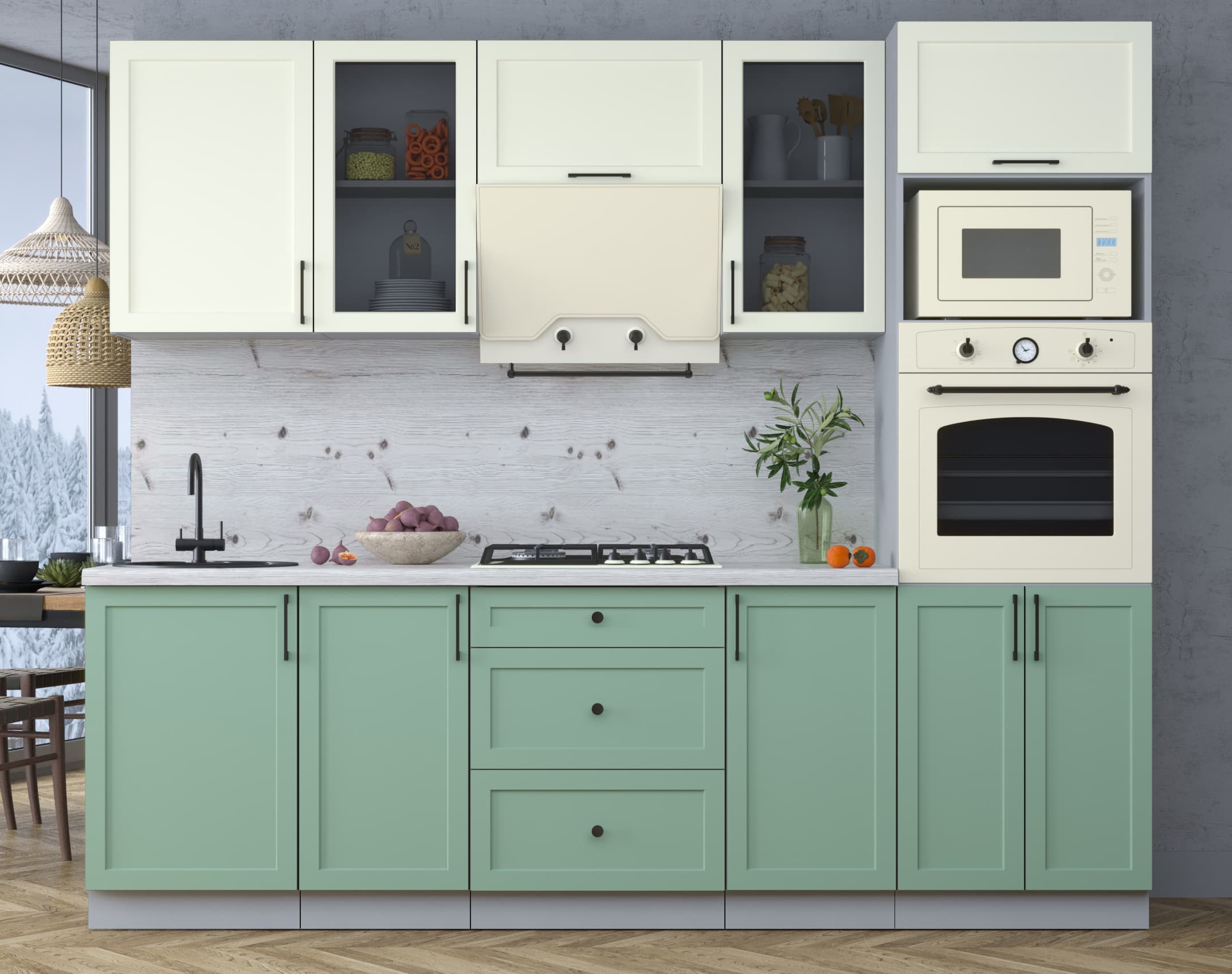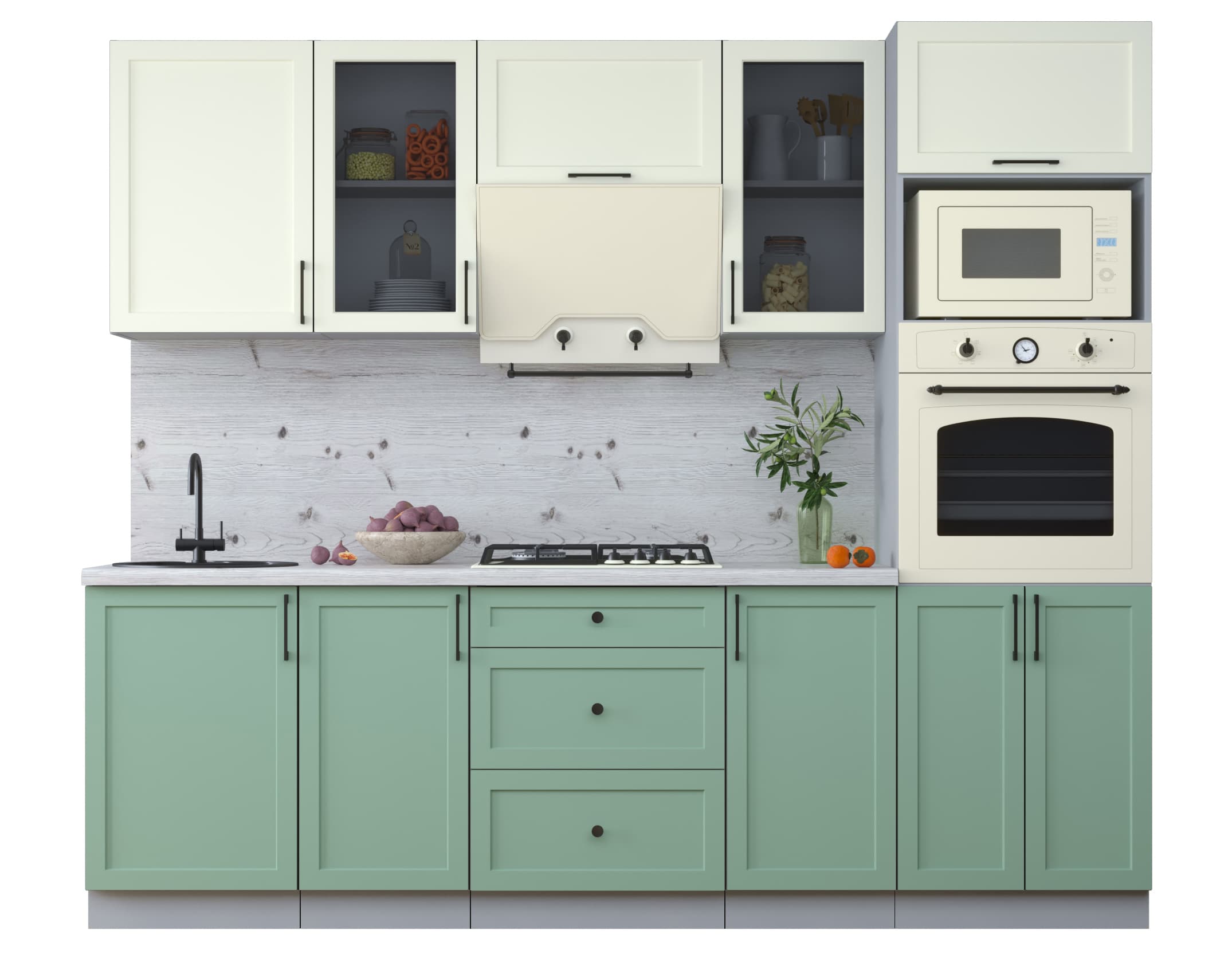 ГОТОВАЯ КУХНЯ ТРЕНД SOFT-TOUCH 2,5В (БЕЛЫЙ/ МЯТА) - Yuta.by