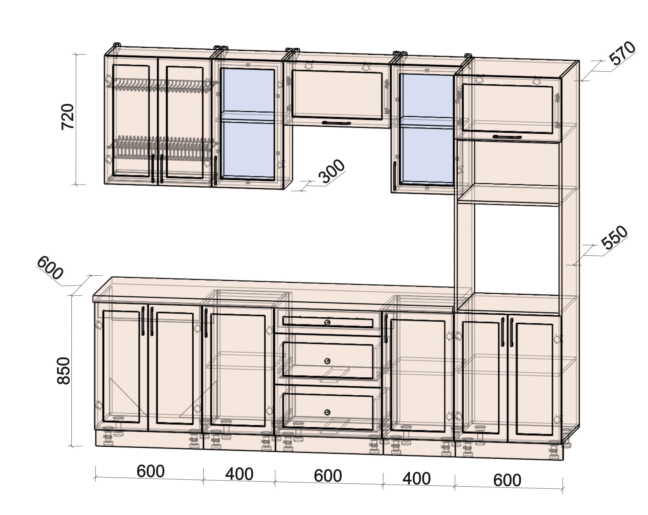 • шкаф нижний под духовой шкаф шириной 600 мм;