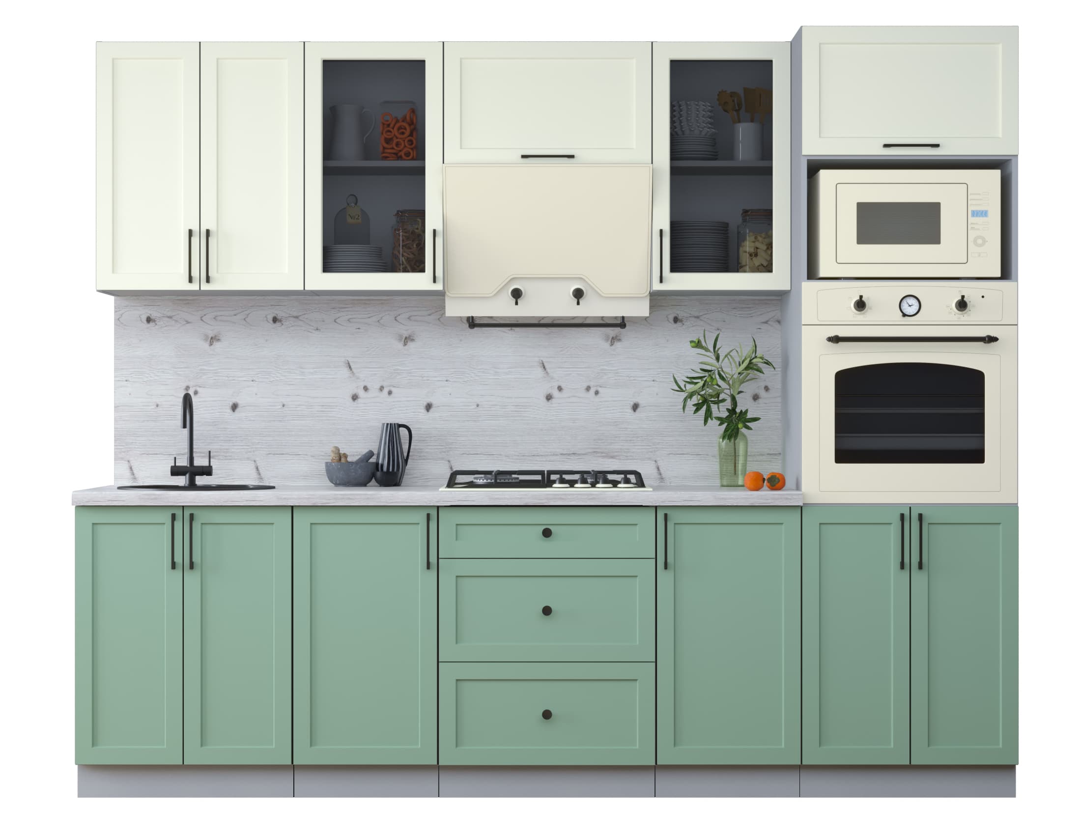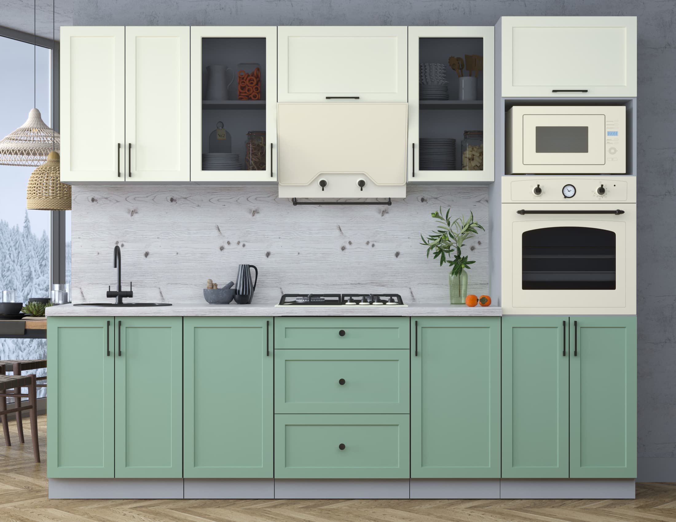 ГОТОВАЯ КУХНЯ ТРЕНД SOFT-TOUCH 2,6В (БЕЛЫЙ/ МЯТА) - Yuta.by