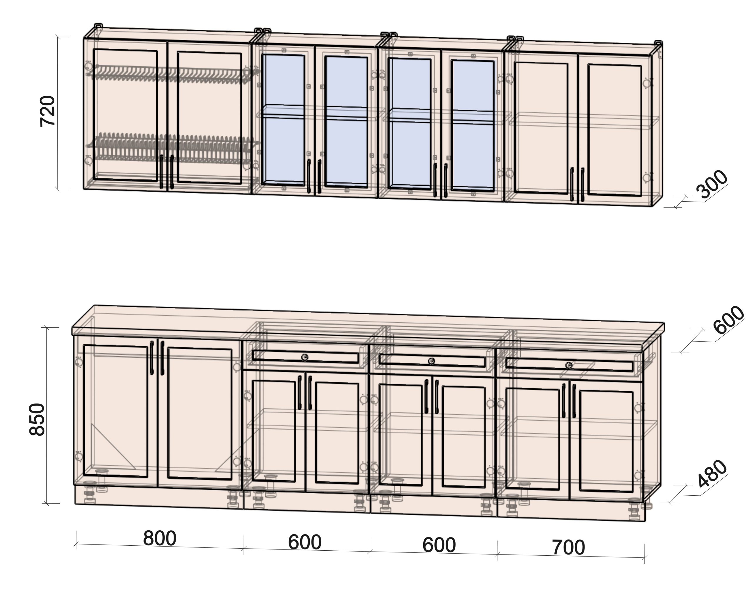 Глубина верхних шкафов