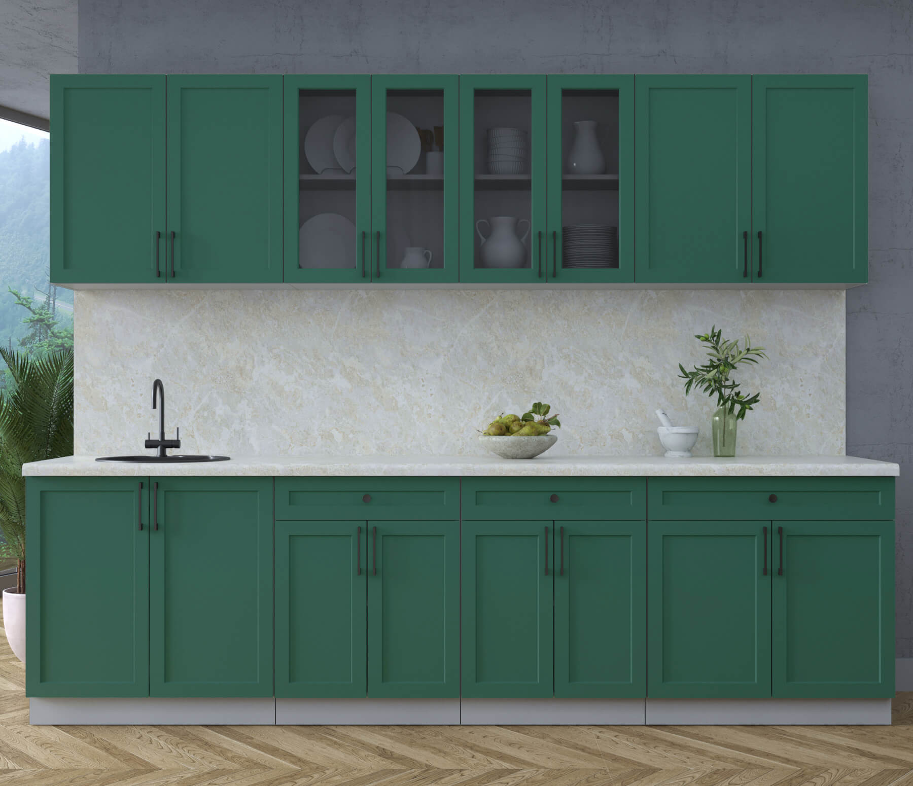 ГОТОВАЯ КУХНЯ ТРЕНД SOFT-TOUCH 2,8А (ИЗУМРУД/ ИЗУМРУД) - Yuta.by