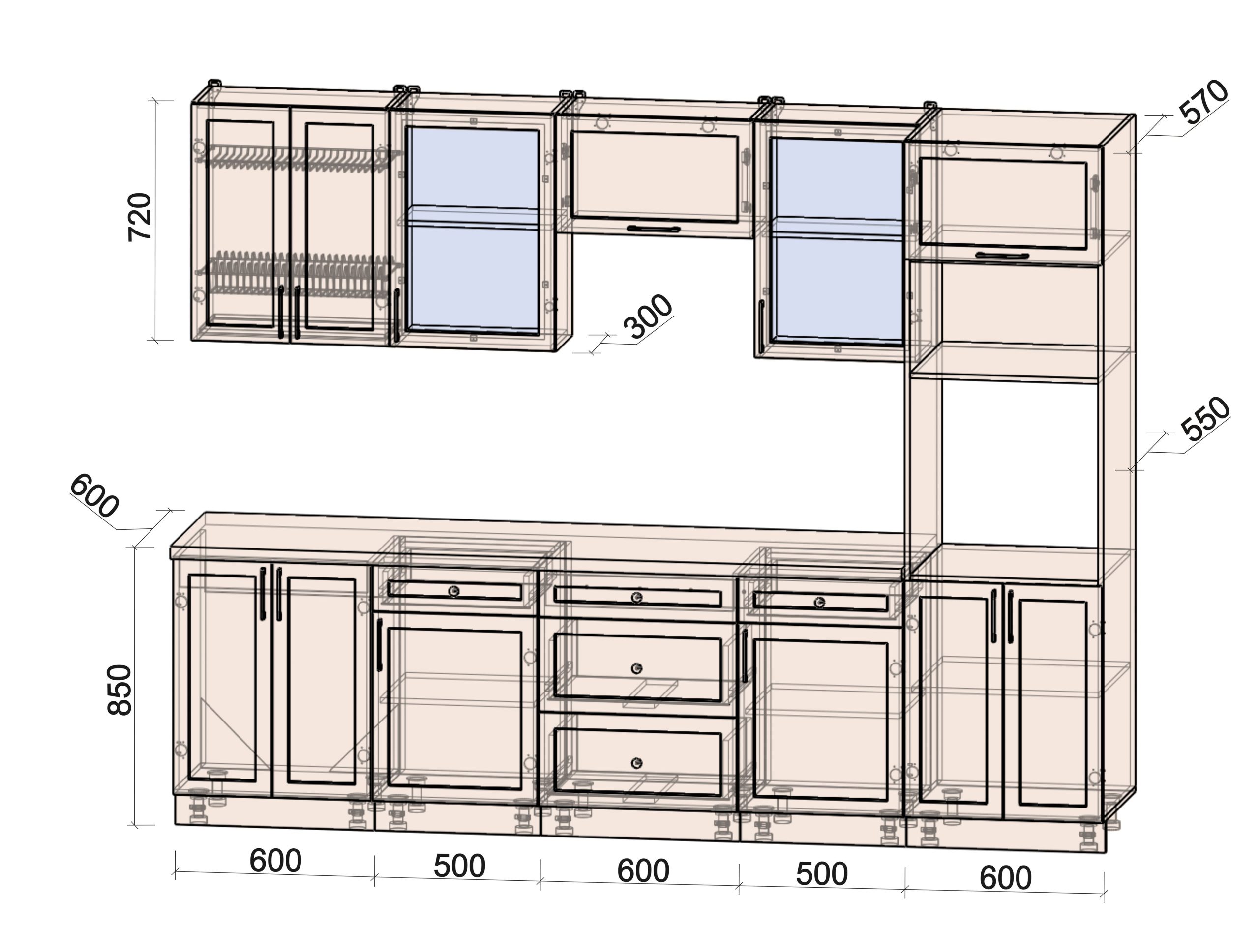 • шкаф нижний под духовой шкаф шириной 600 мм;