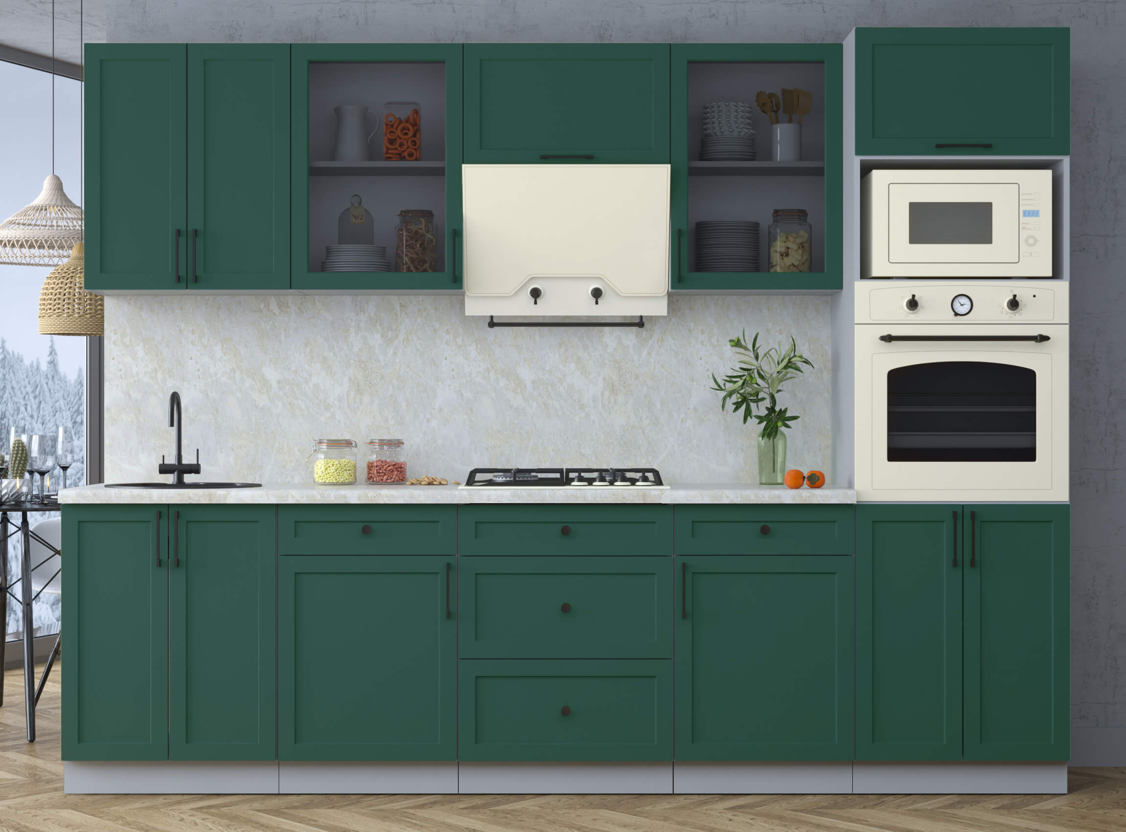 ГОТОВАЯ КУХНЯ ТРЕНД SOFT-TOUCH 2,8В (ИЗУМРУД/ ИЗУМРУД) - Yuta.by