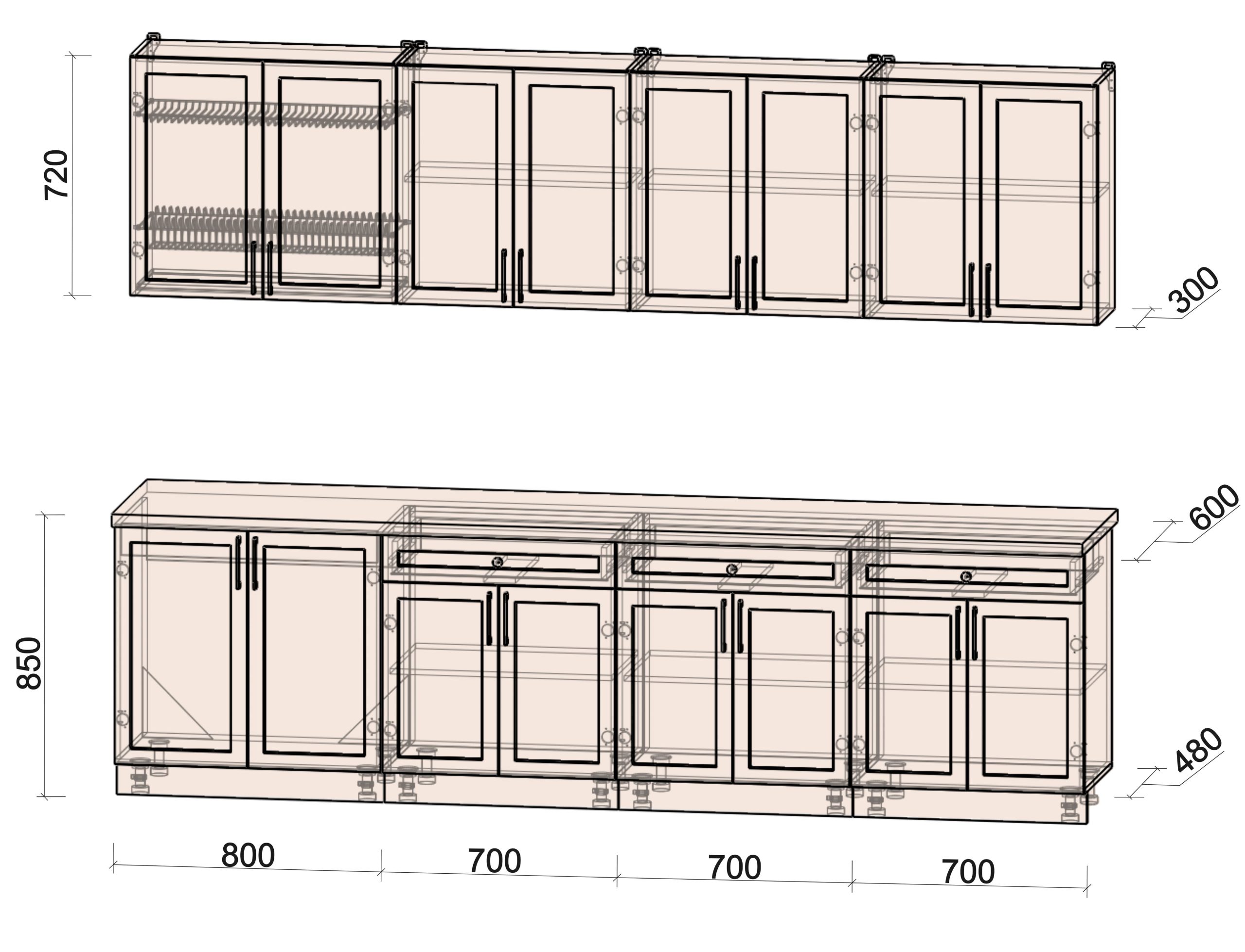 Глубина верхних шкафов