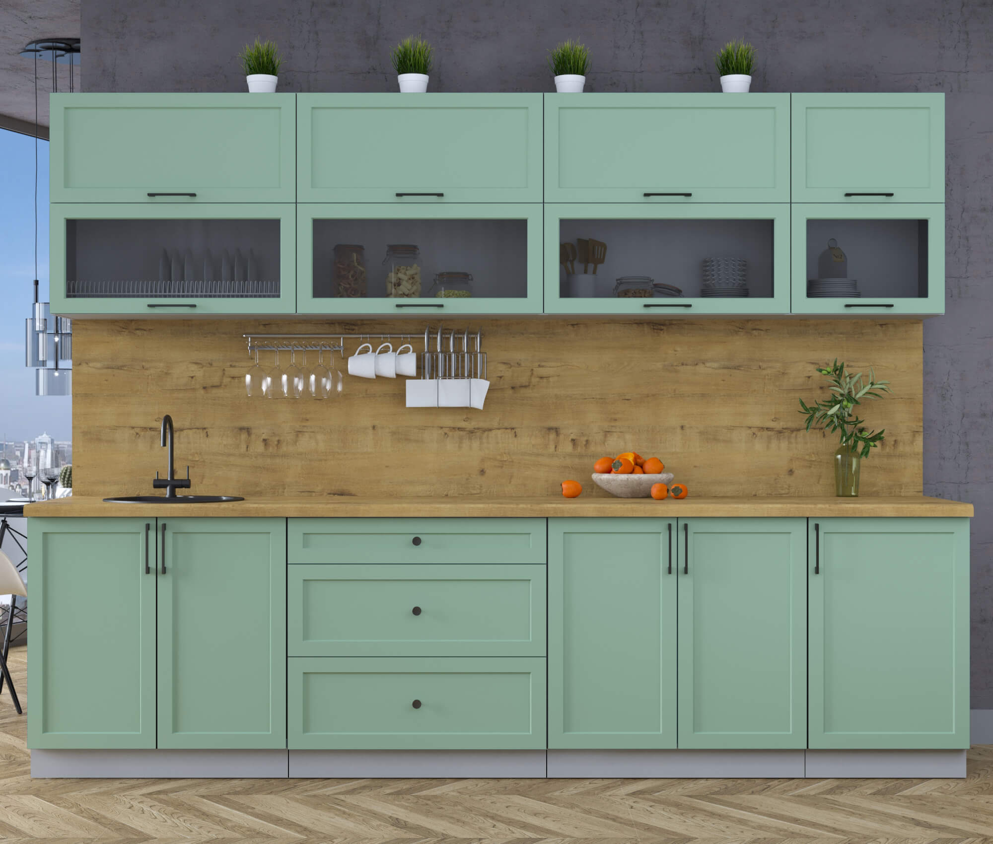 ГОТОВАЯ КУХНЯ ТРЕНД SOFT-TOUCH 2,9Б (МЯТА/ МЯТА) - Yuta.by