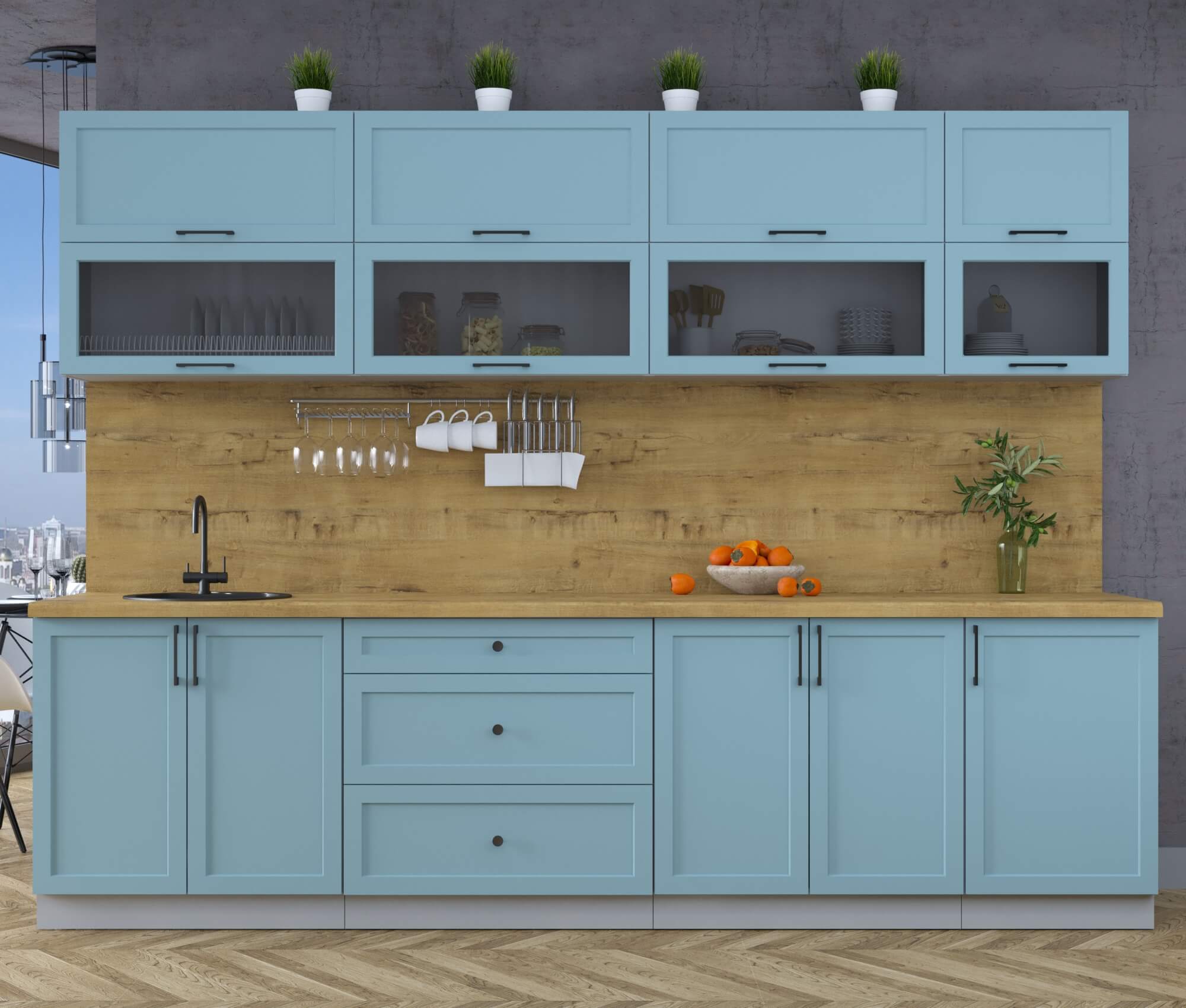 Цвет верхних фасадов кухни