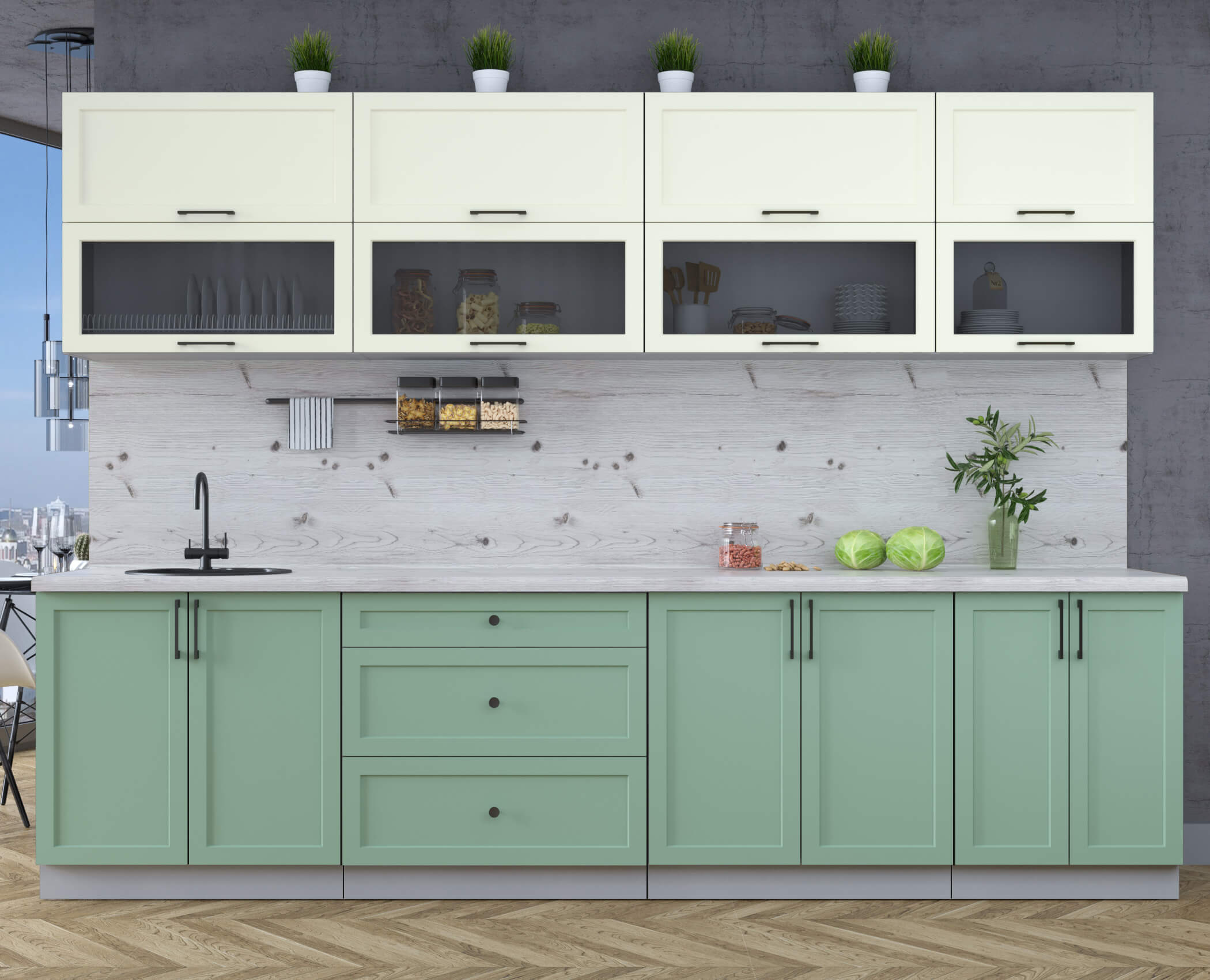 ГОТОВАЯ КУХНЯ ТРЕНД SOFT-TOUCH 3,0Б (БЕЛЫЙ/ МЯТА) - Yuta.by