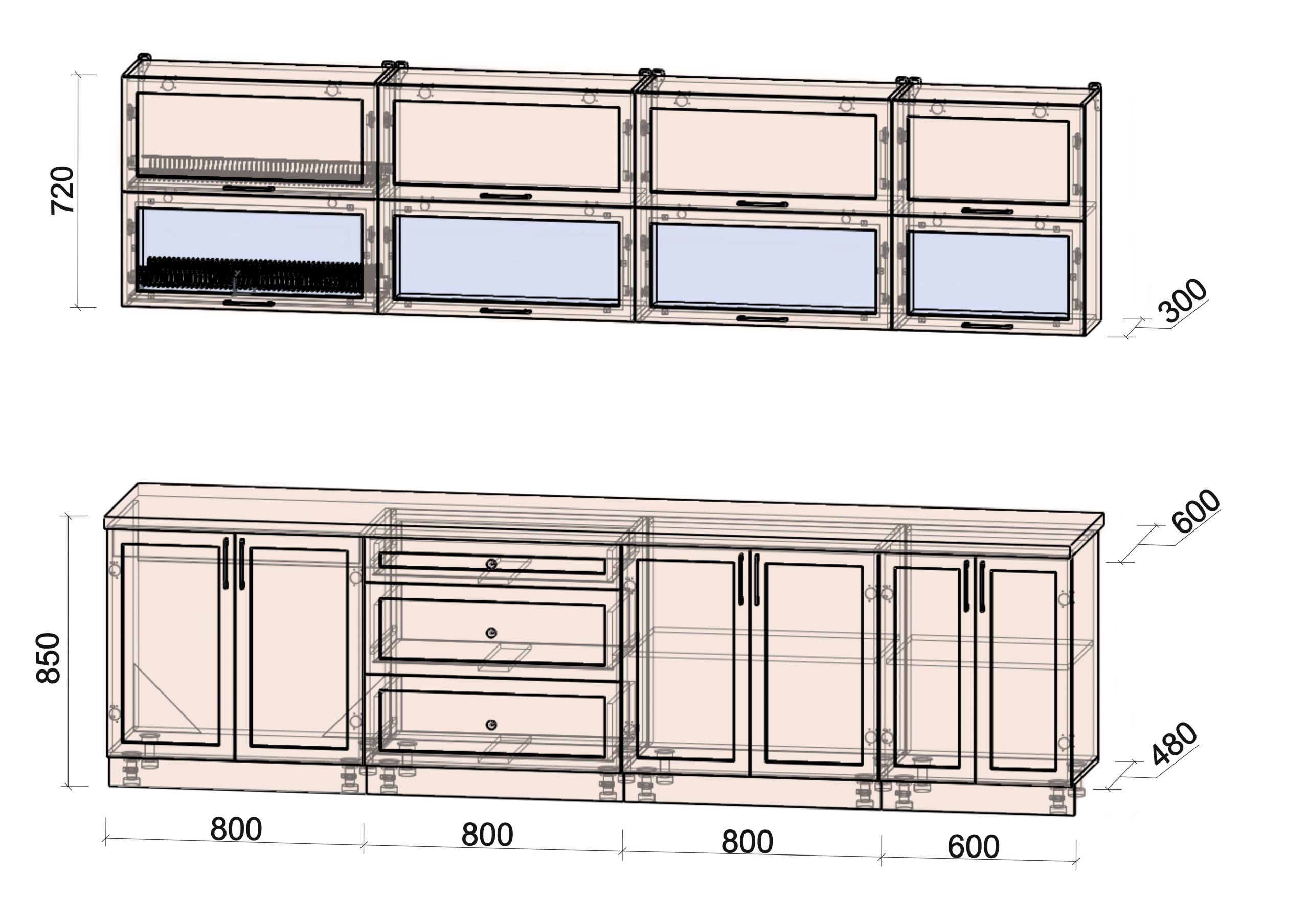 • шкаф нижний под духовой шкаф шириной 600 мм;