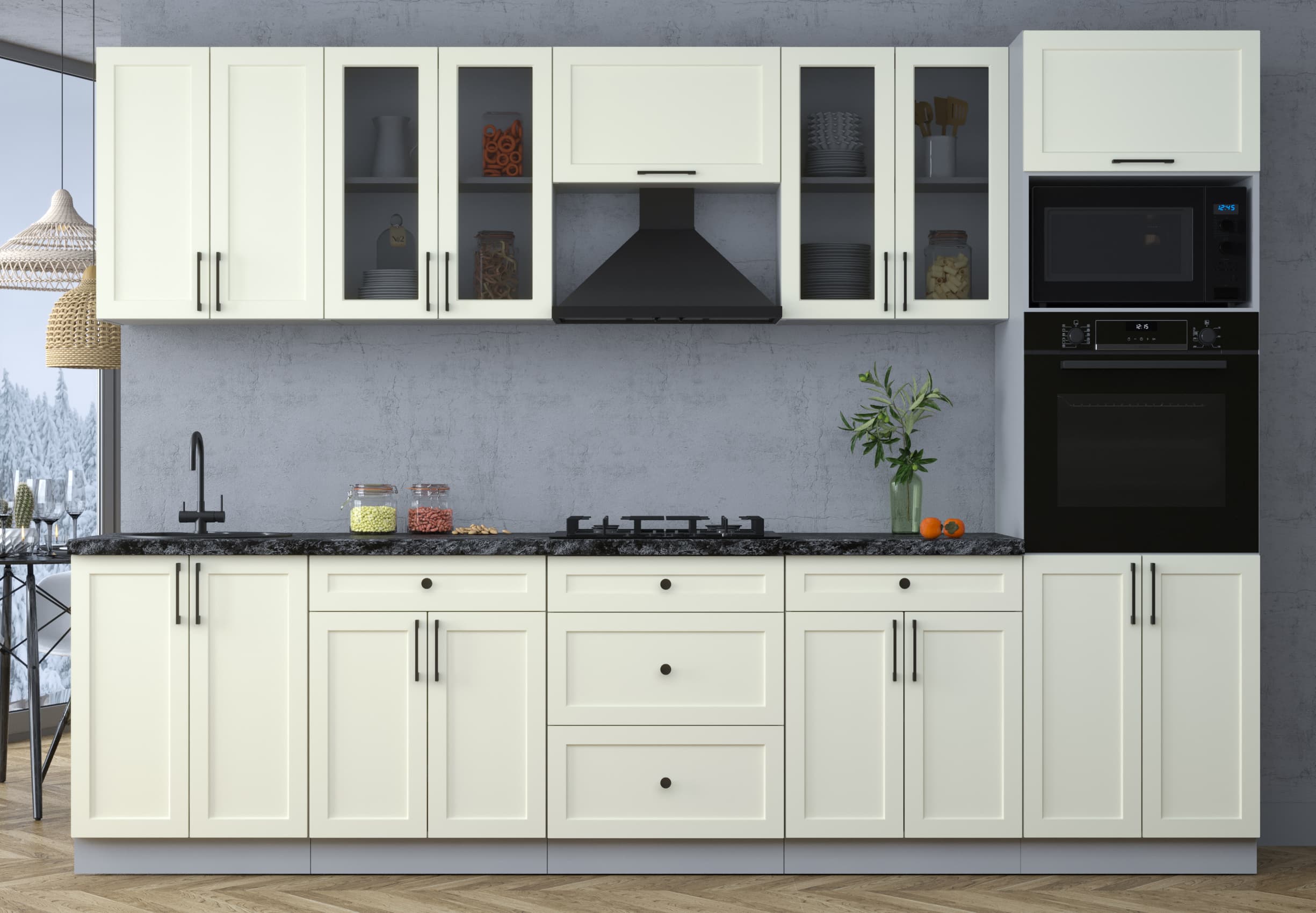 Кухни «Тренд» – отличительной особенностью является фасад с витриной со стеклом «Тонированный графит» и металлические ручки в черном цвете. Максимально актуальное решение для нынешних интерьеров: совокупность практичности, спокойной палитры цветов и элегантного минимализма в фактуре целесообразно как в больших, так и в маленьких помещениях. Принимая решение приоБеларусьи кухню «Тренд», Вы совершаете выбор в пользу лаконичности и функциональности по крайне приятной цене.