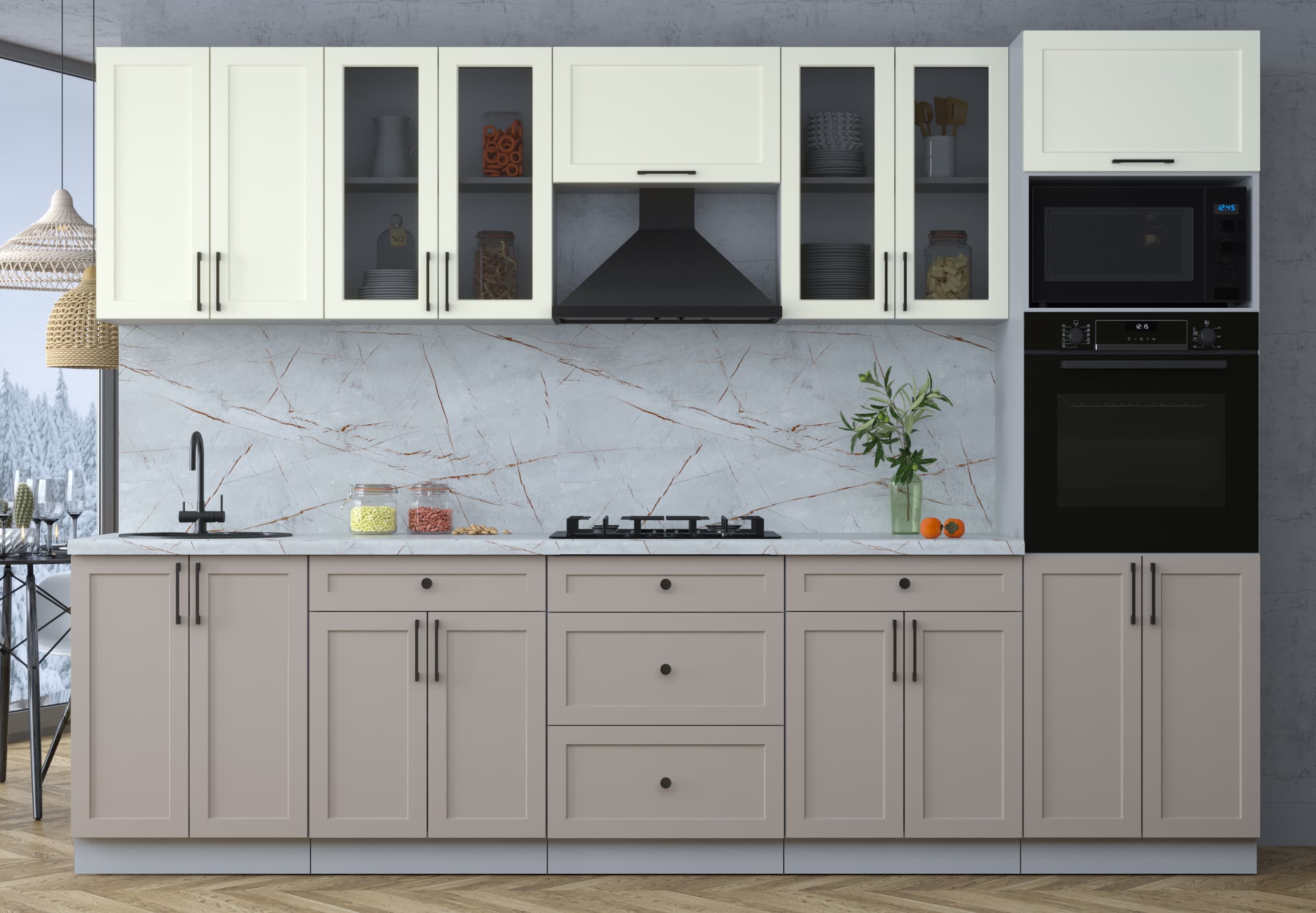 ГОТОВАЯ КУХНЯ ТРЕНД SOFT-TOUCH 3,0В (БЕЛЫЙ/ ЛУНА) - Yuta.by