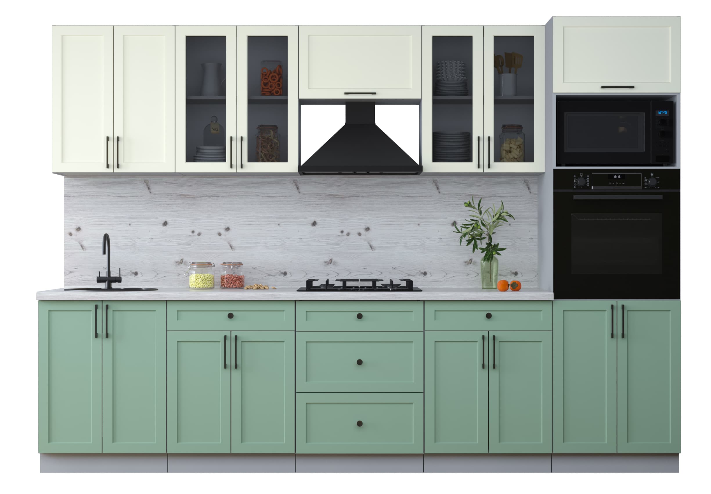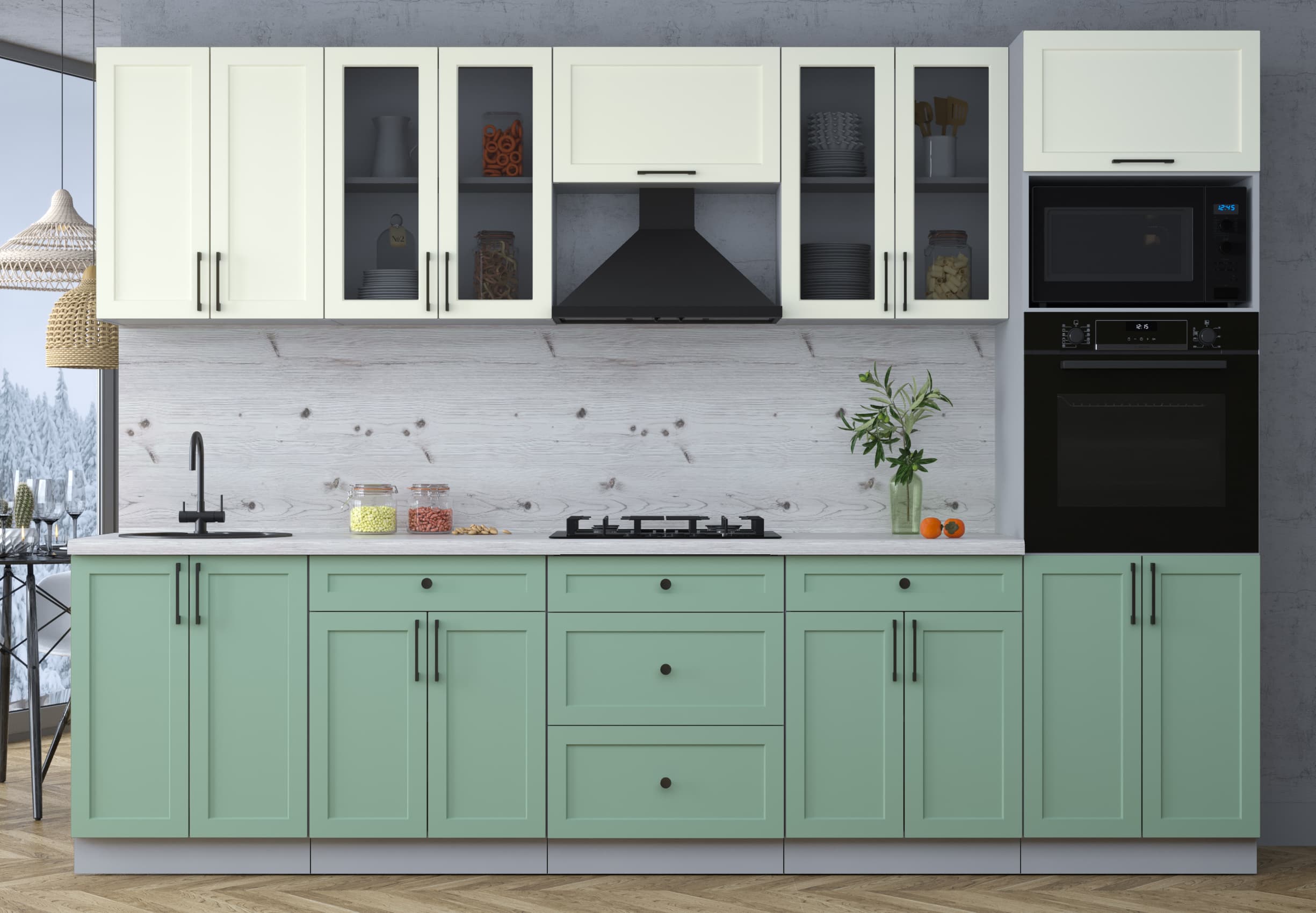 ГОТОВАЯ КУХНЯ ТРЕНД SOFT-TOUCH 3,0В (БЕЛЫЙ/ МЯТА) - Yuta.by