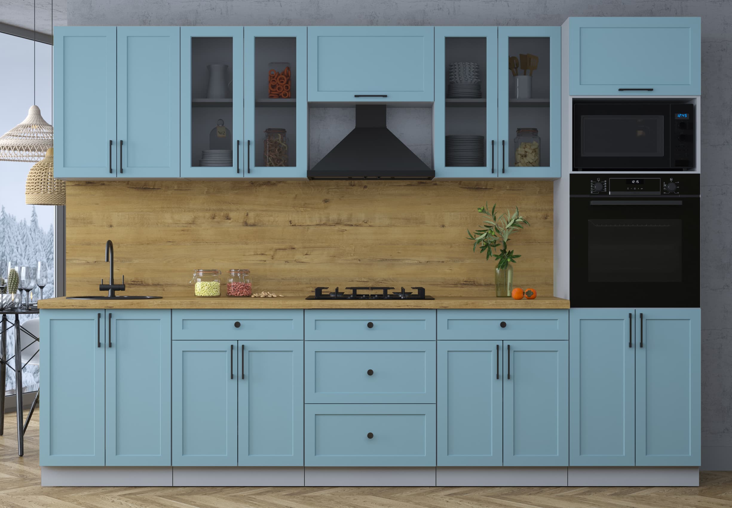 ГОТОВАЯ КУХНЯ ТРЕНД SOFT-TOUCH 3,0В (ОКЕАН/ ОКЕАН) - Yuta.by