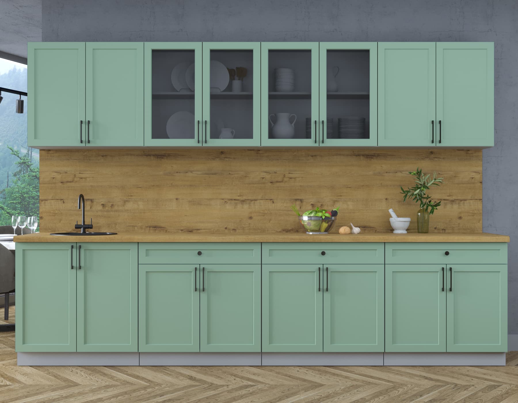 ГОТОВАЯ КУХНЯ ТРЕНД SOFT-TOUCH 3.2А (МЯТА/ МЯТА) - Yuta.by