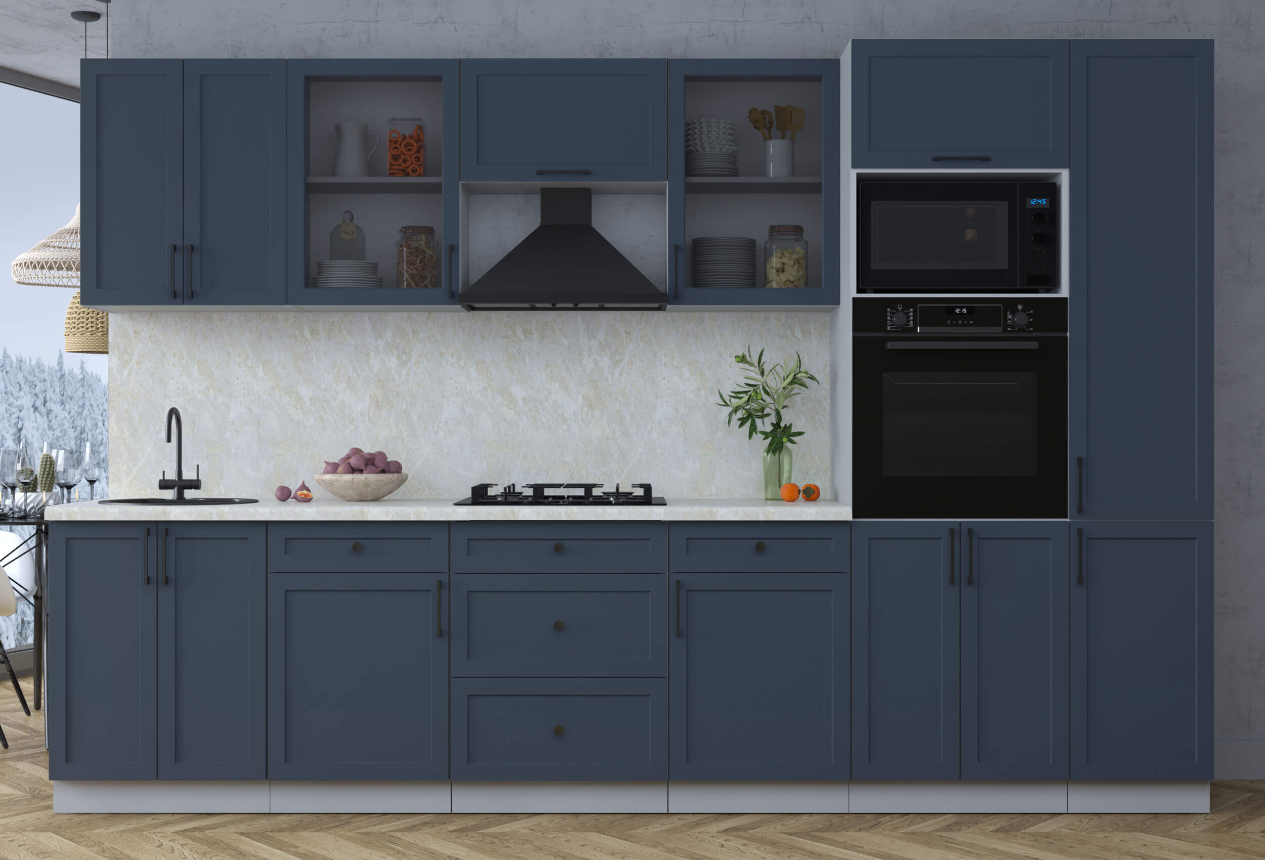 ГОТОВАЯ КУХНЯ ТРЕНД SOFT-TOUCH 3,2В (ИНДИГО/ ИНДИГО) - Yuta.by
