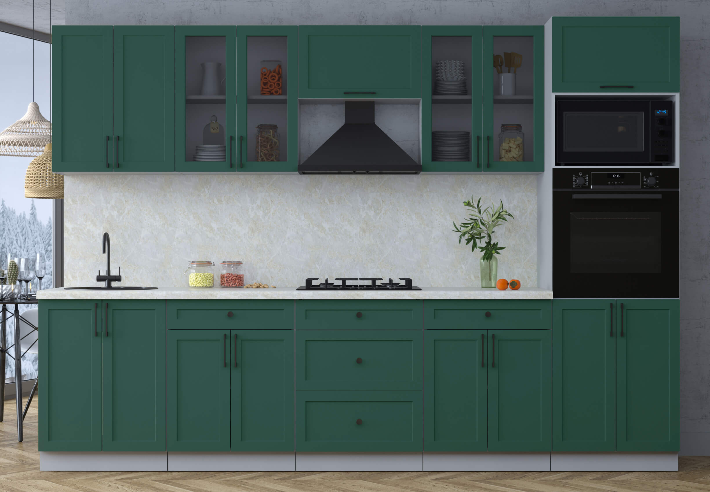 ГОТОВАЯ КУХНЯ ТРЕНД SOFT-TOUCH 3,2В (ИЗУМРУД/ ИЗУМРУД) - Yuta.by