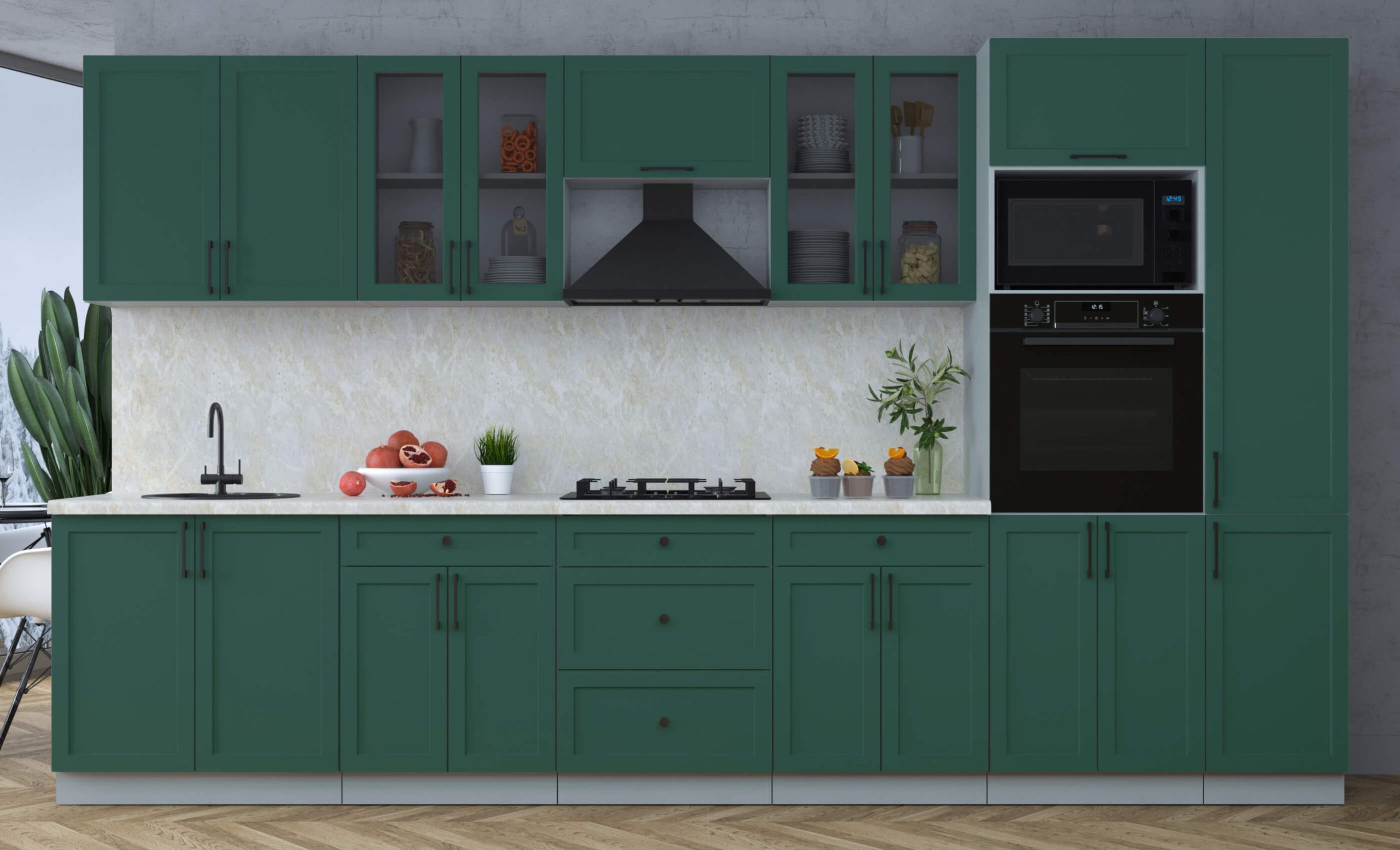ГОТОВАЯ КУХНЯ ТРЕНД SOFT-TOUCH 3,6В (ИЗУМРУД/ ИЗУМРУД) - Yuta.by