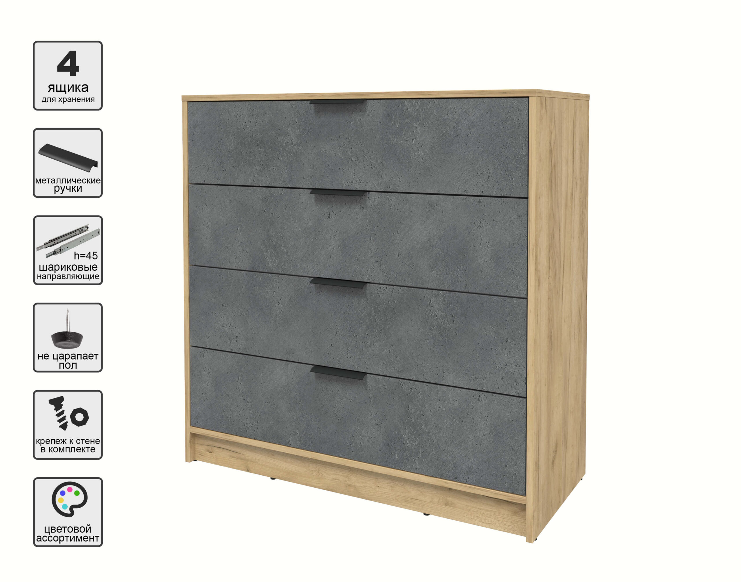 KОМОД КТ-К100 (ДУБ ЗОЛОТОЙ ЛДСП/ БЕТОН ПОРТЛЕНД ЛДСП) Ш1000 В1020 Г451 - Yuta.by