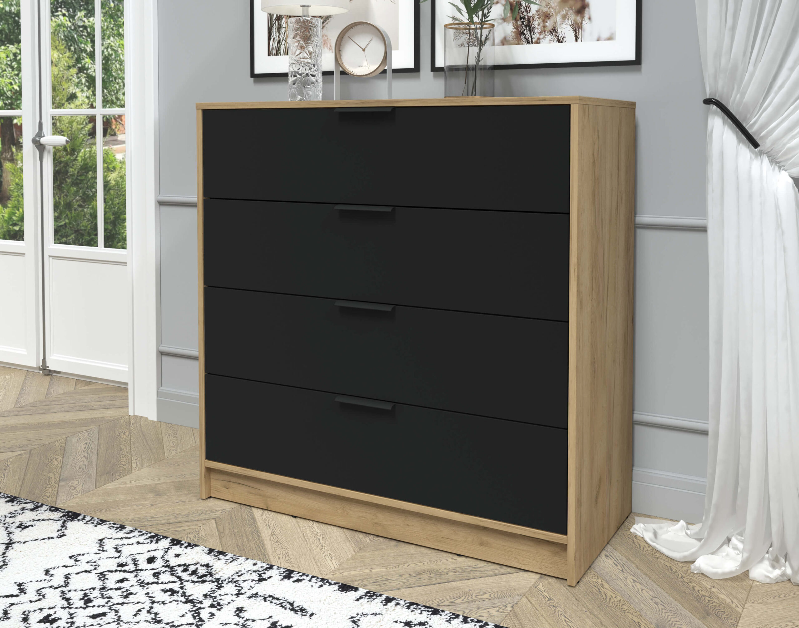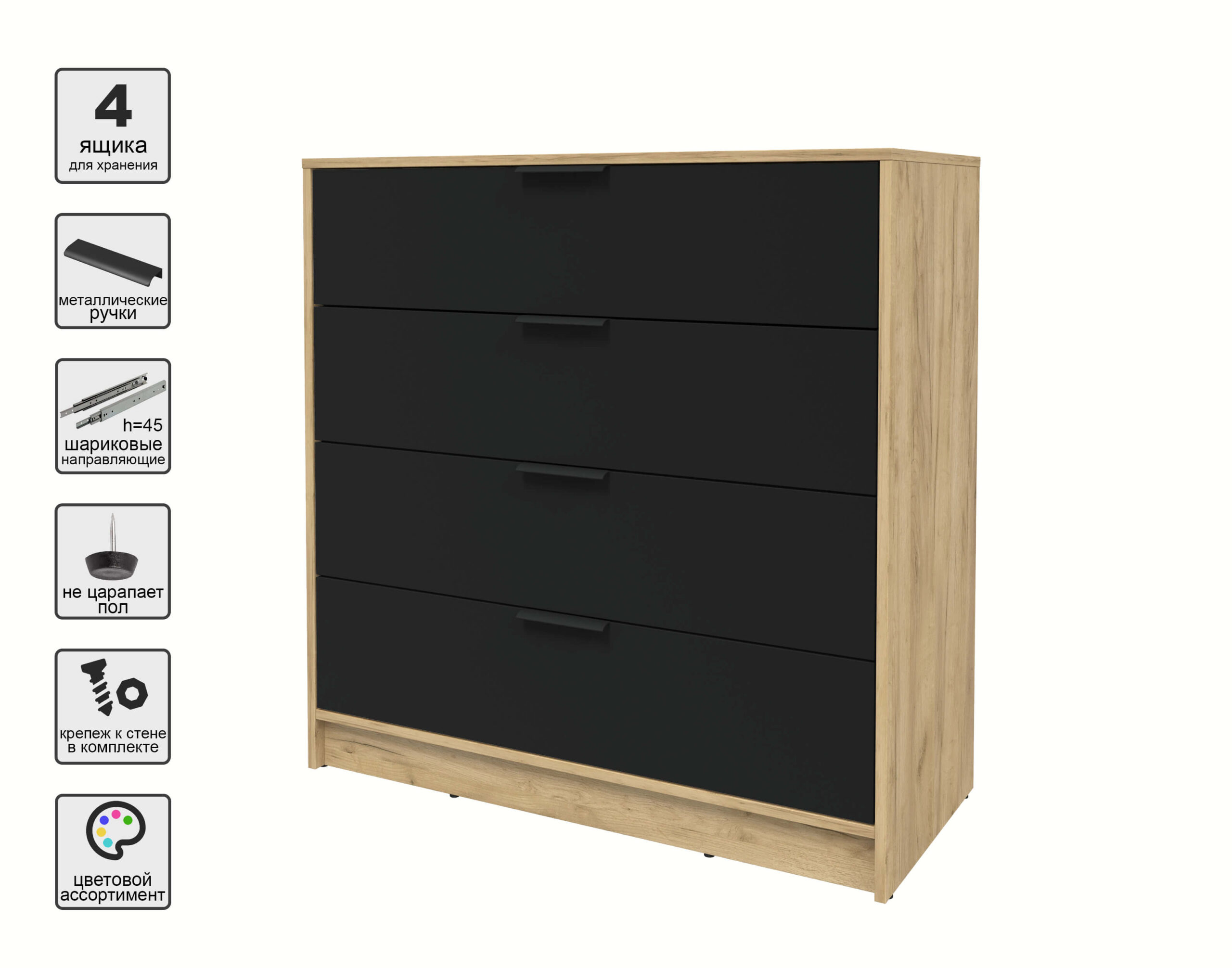 KОМОД КТ-К100 (ДУБ ЗОЛОТОЙ ЛДСП/ ЧЕРНЫЙ ЛДСП) Ш1000 В1020 Г451 - Yuta.by