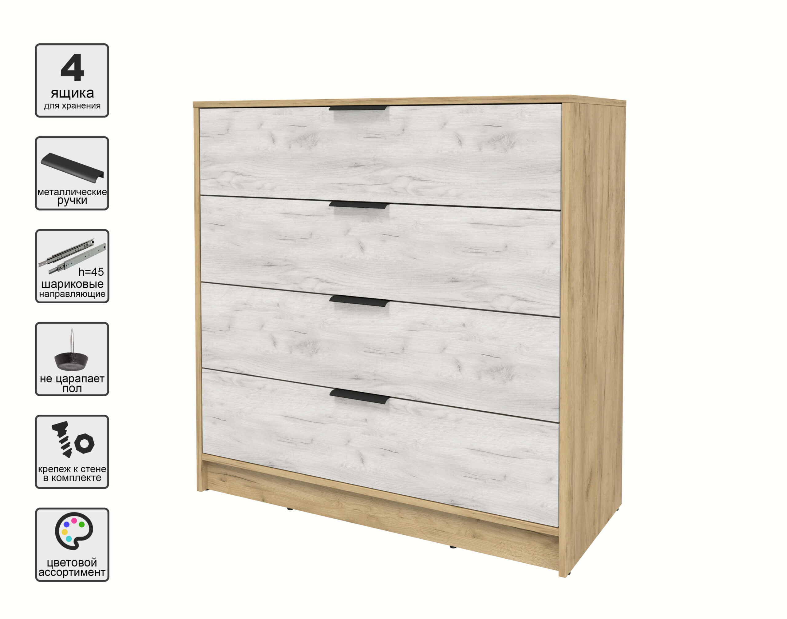 KОМОД КТ-К100 (ДУБ ЗОЛОТОЙ ЛДСП/ ДУБ БЕЛЫЙ ЛДСП) Ш1000 В1020 Г451 - Yuta.by