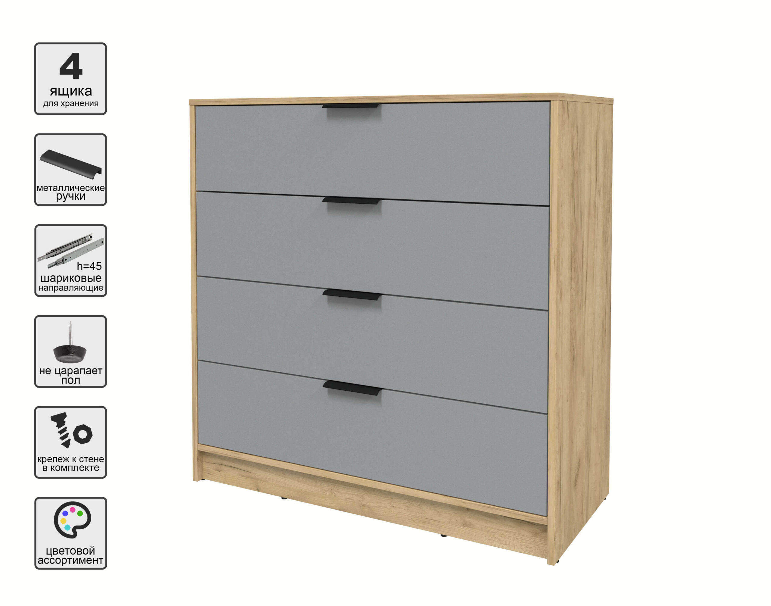 KОМОД КТ-К100 (ДУБ ЗОЛОТОЙ ЛДСП/ СЕРЕБРО ЛДСП) Ш1000 В1020 Г451 - Yuta.by