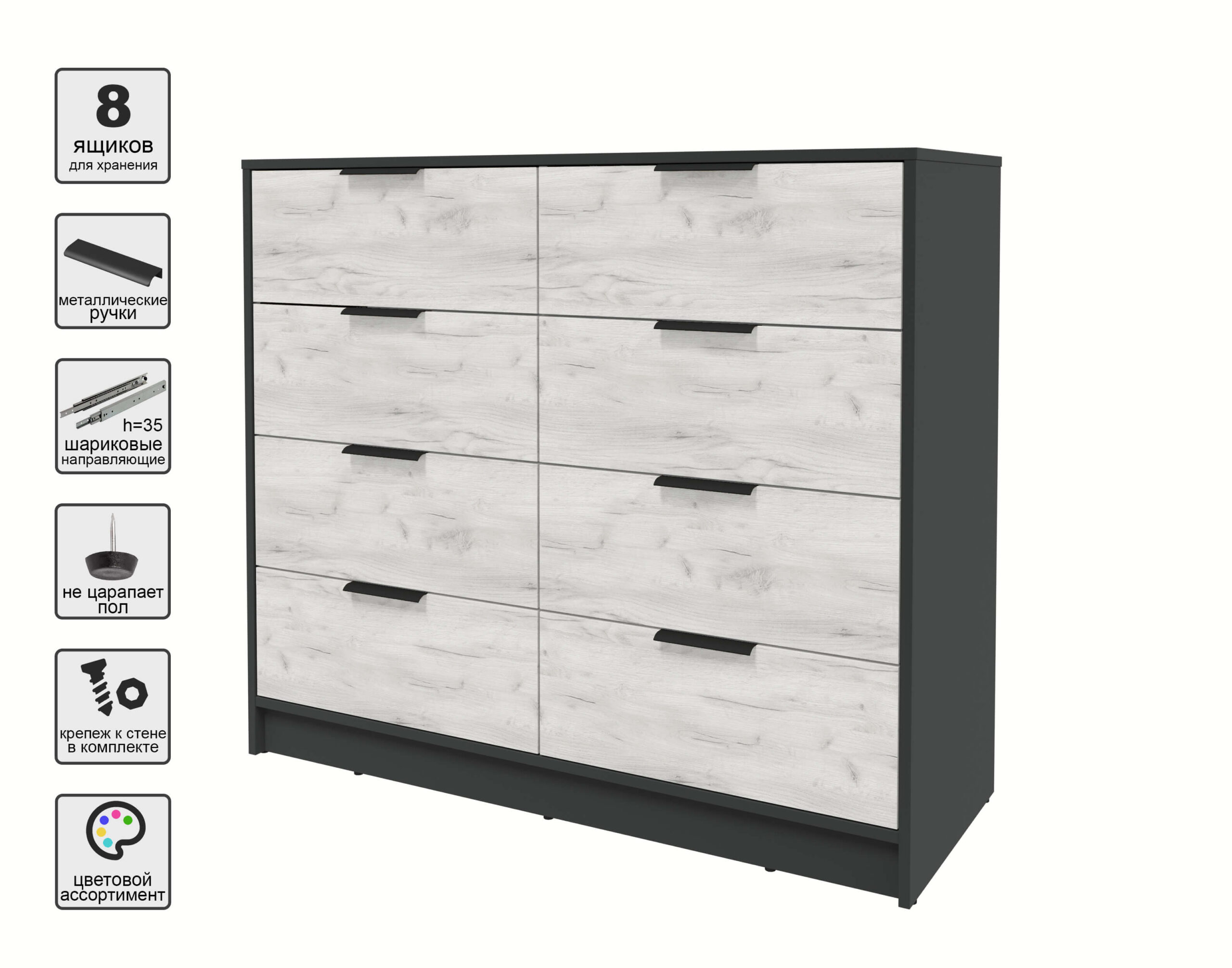 KОМОД КТ-К117 (АНТРАЦИТ ЛДСП/ ДУБ БЕЛЫЙ ЛДСП) Ш1165 В1020 Г451