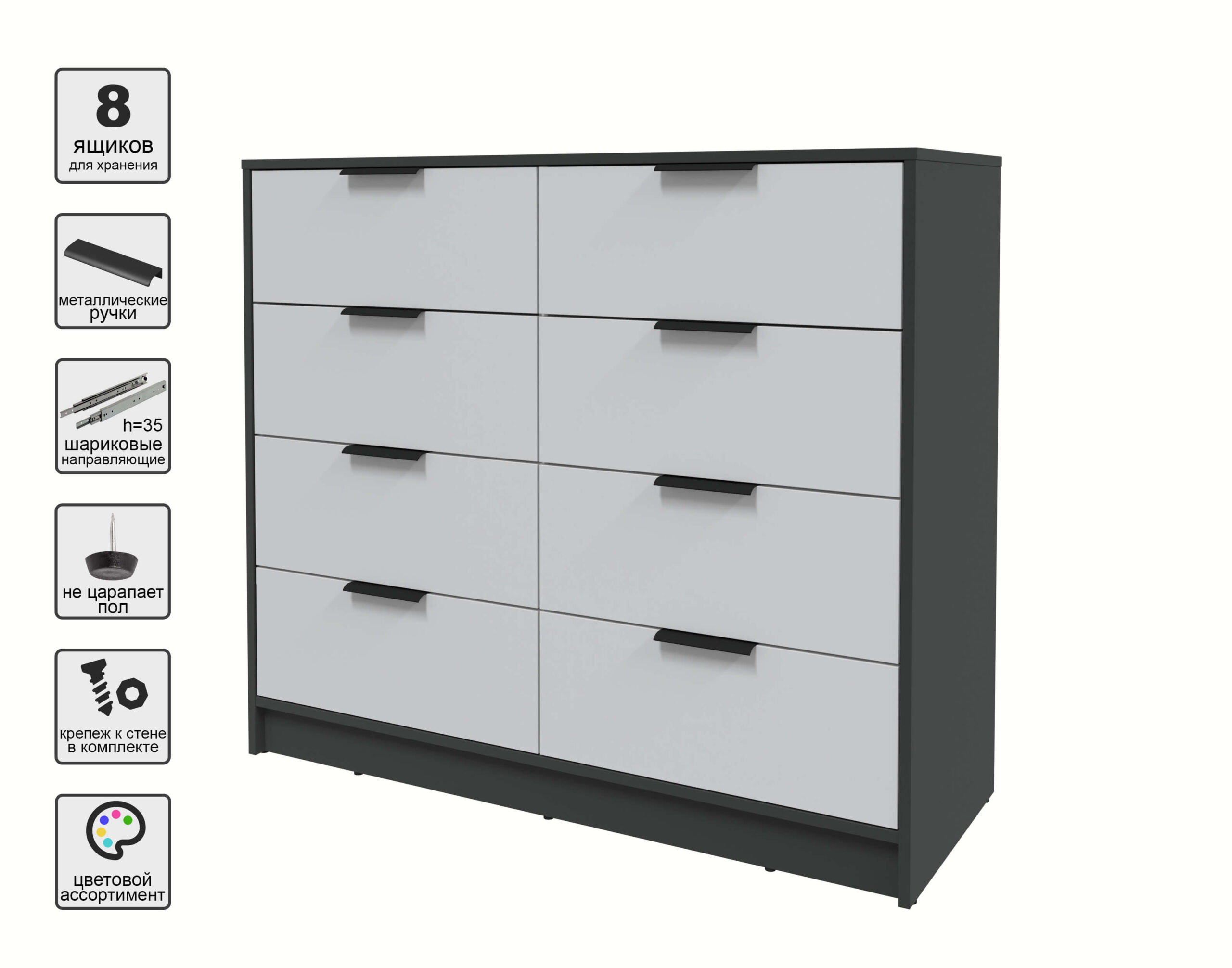 KОМОД КТ-К117 (АНТРАЦИТ ЛДСП/ СЕРЫЙ ЛДСП) Ш1165 В1020 Г451