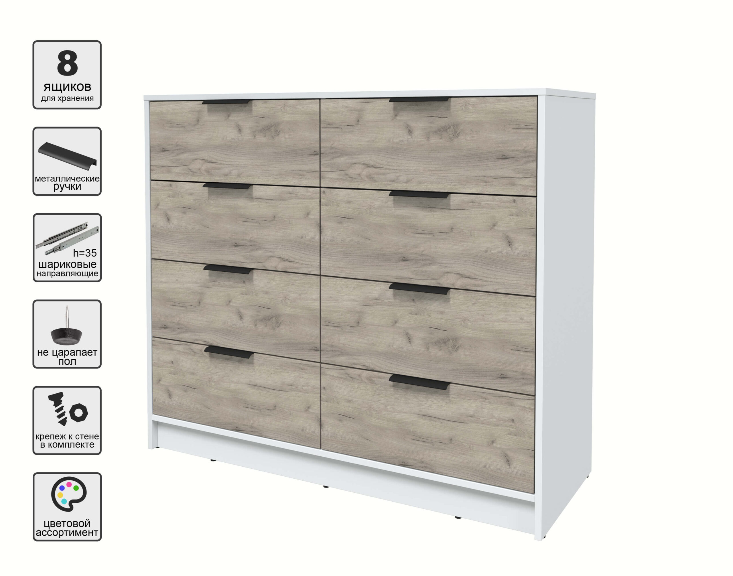 KОМОД КТ-К117 (БЕЛЫЙ ЛДСП/ ДУБ СЕРЫЙ ЛДСП) Ш1165 В1020 Г451
