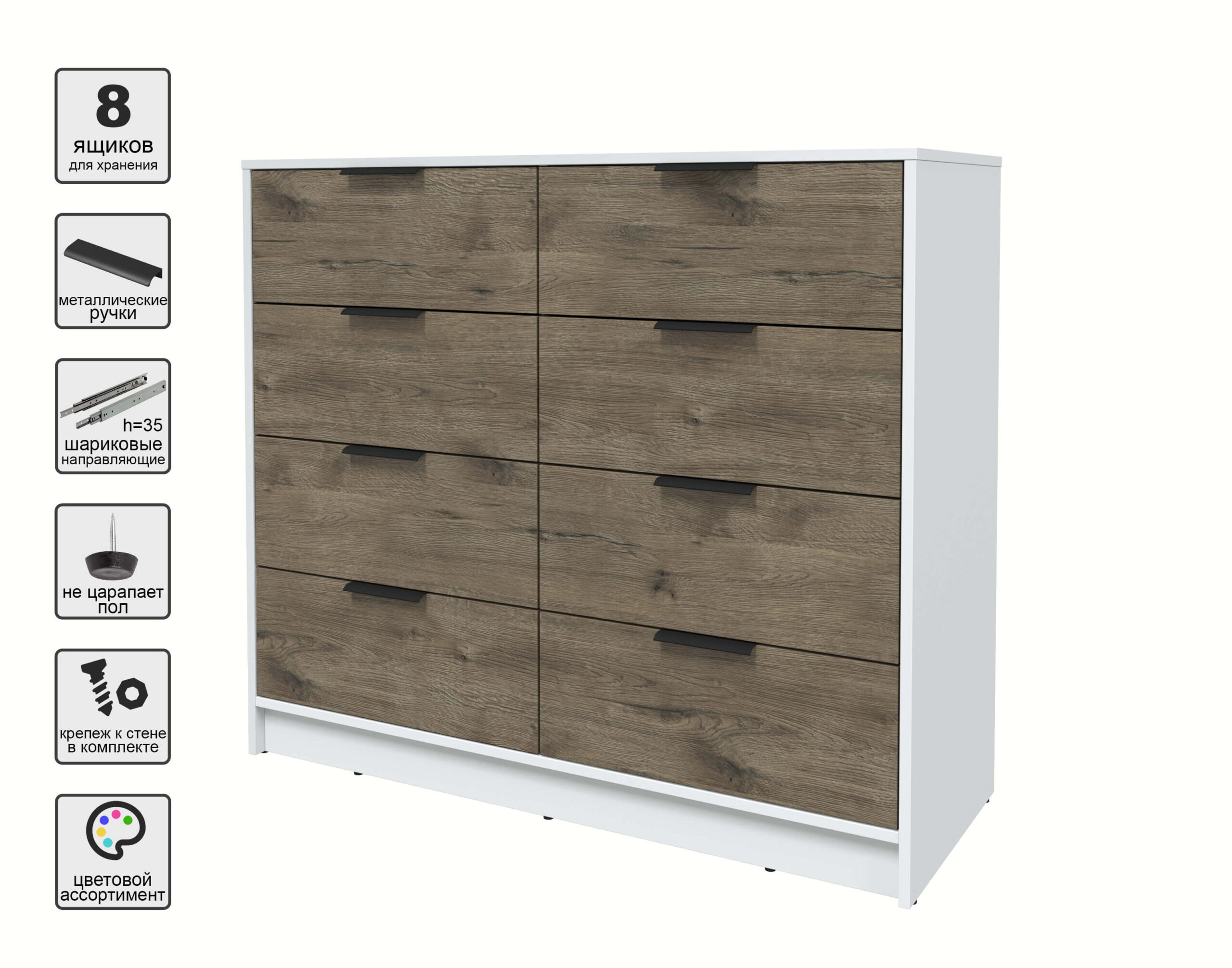 KОМОД КТ-К117 (БЕЛЫЙ ЛДСП/ ДУБ ВЕЛЛИНГТОН ЛДСП) Ш1165 В1020 Г451 - Yuta.by