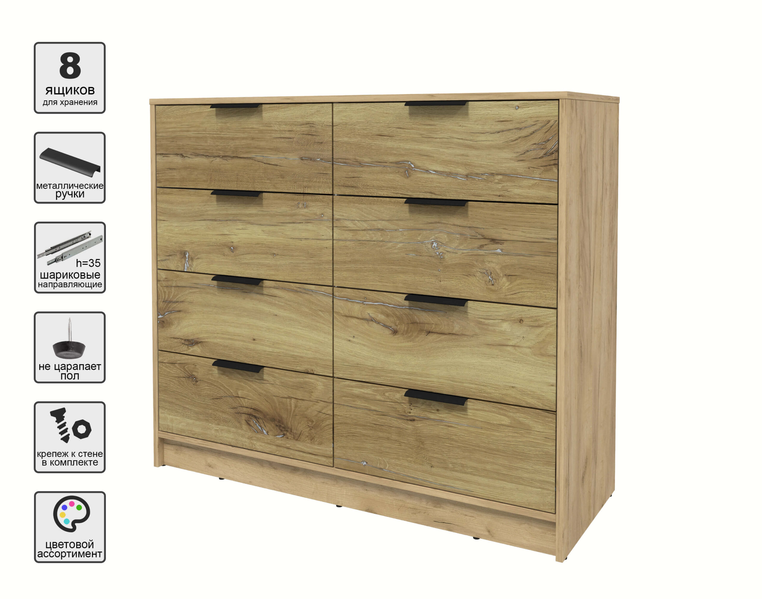 KОМОД КТ-К117 (ДУБ ЗОЛОТОЙ ЛДСП/ ДУБ НОКС ЛДСП) Ш1165 В1020 Г451 - Yuta.by