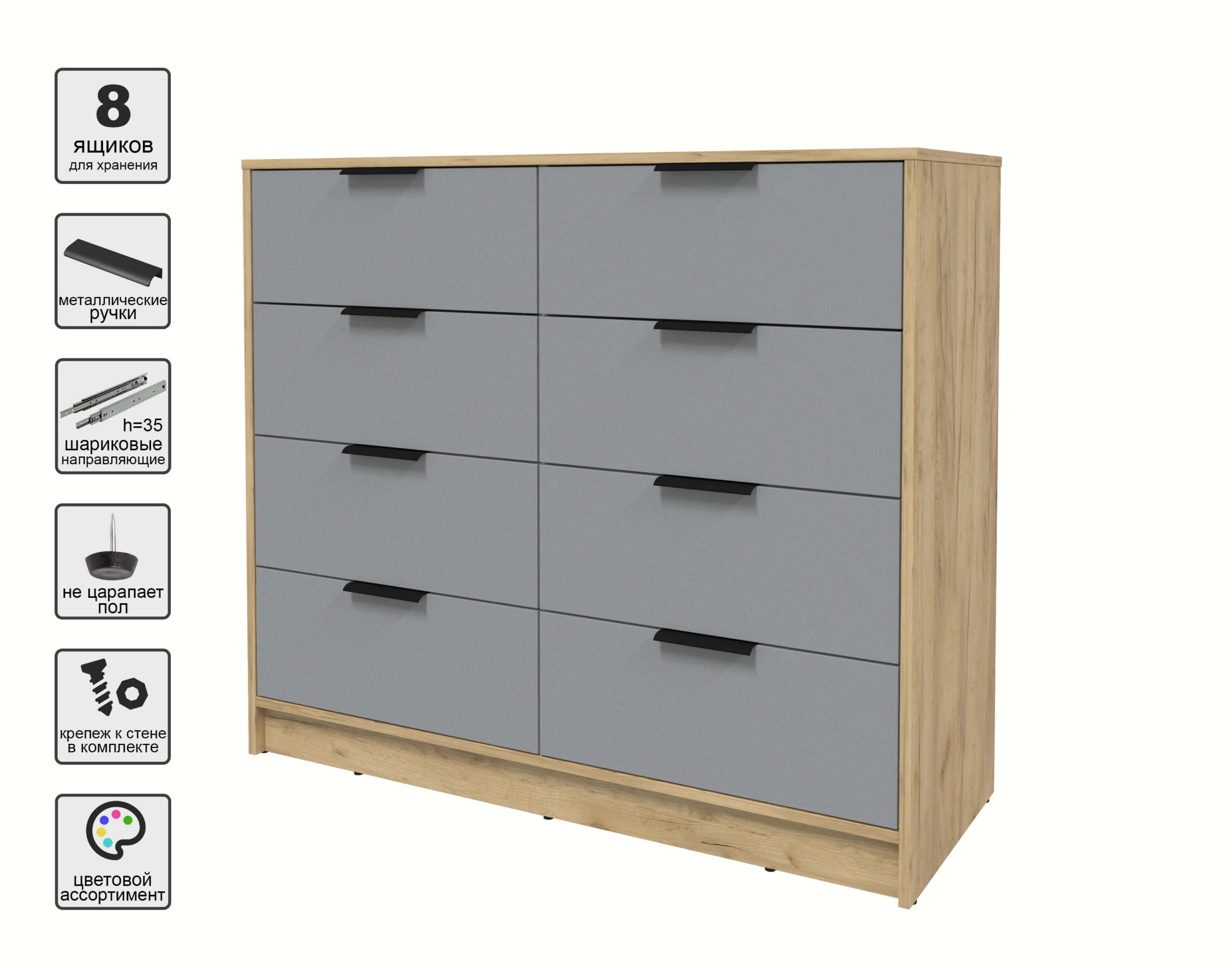 KОМОД КТ-К117 (ДУБ ЗОЛОТОЙ ЛДСП/ СЕРЕБРО ЛДСП) Ш1165 В1020 Г451