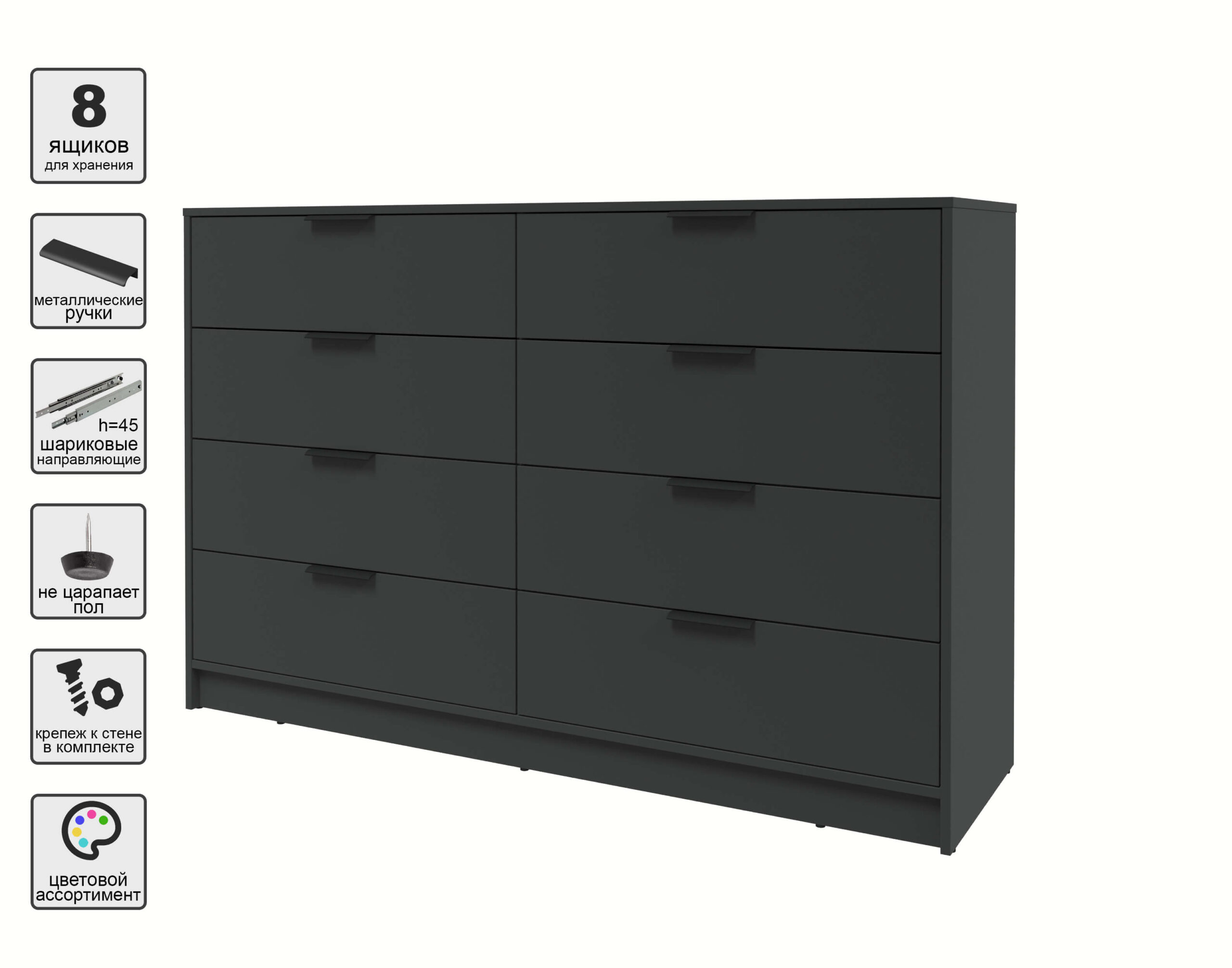 KОМОД КТ-К157 (АНТРАЦИТ ЛДСП/ АНТРАЦИТ ЛДСП) Ш1565 В1020 Г451 - Yuta.by