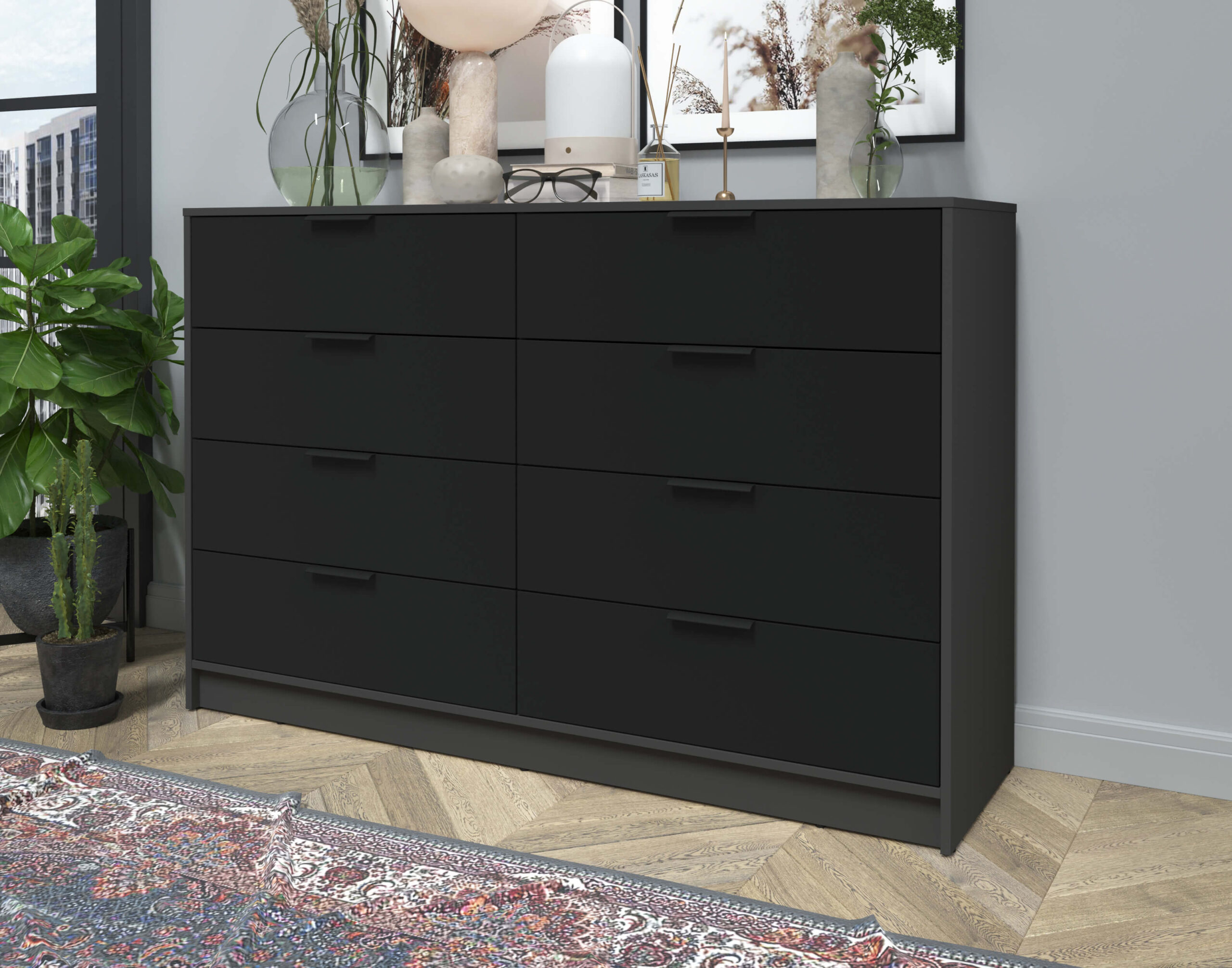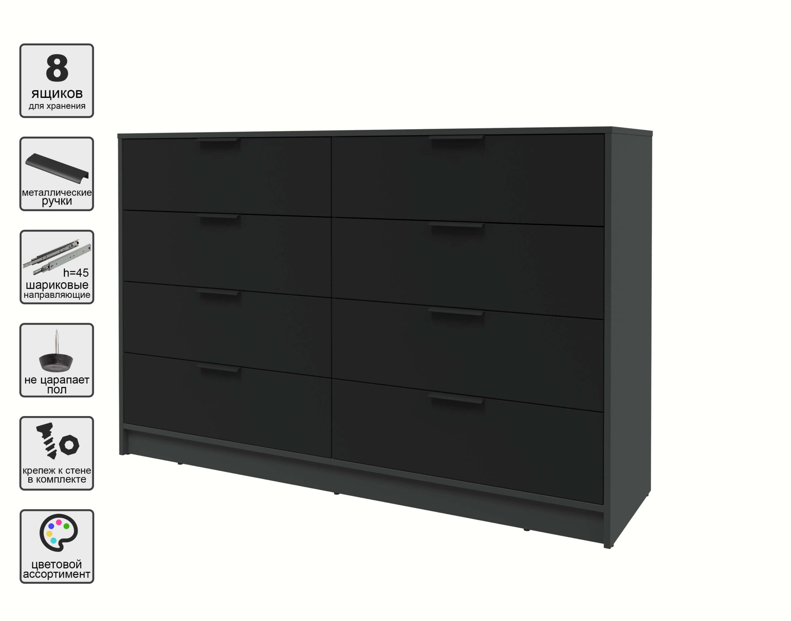 KОМОД КТ-К157 (АНТРАЦИТ ЛДСП/ ЧЕРНЫЙ ЛДСП) Ш1565 В1020 Г451 - Yuta.by