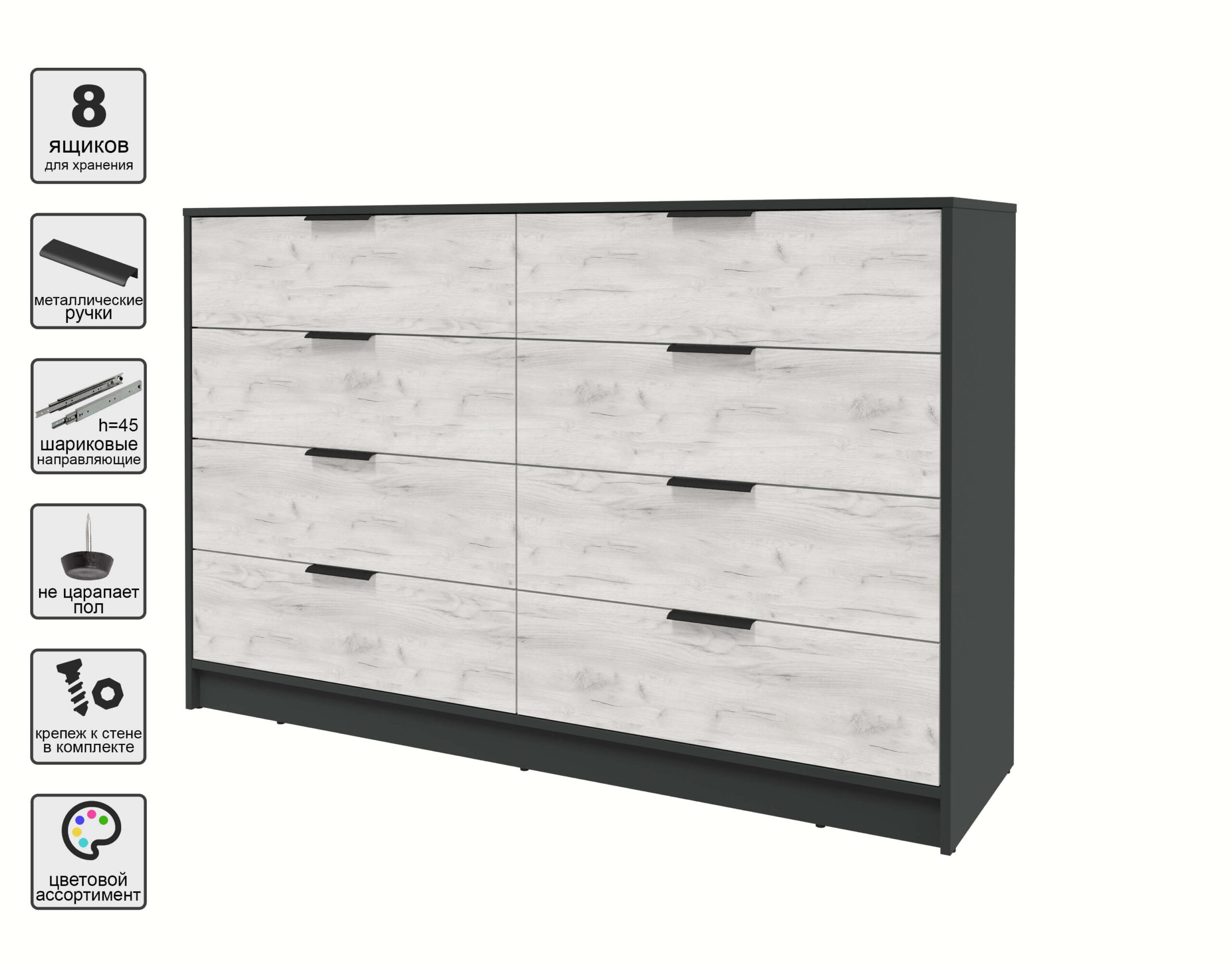 KОМОД КТ-К157 (АНТРАЦИТ ЛДСП/ ДУБ БЕЛЫЙ ЛДСП) Ш1565 В1020 Г451 - Yuta.by