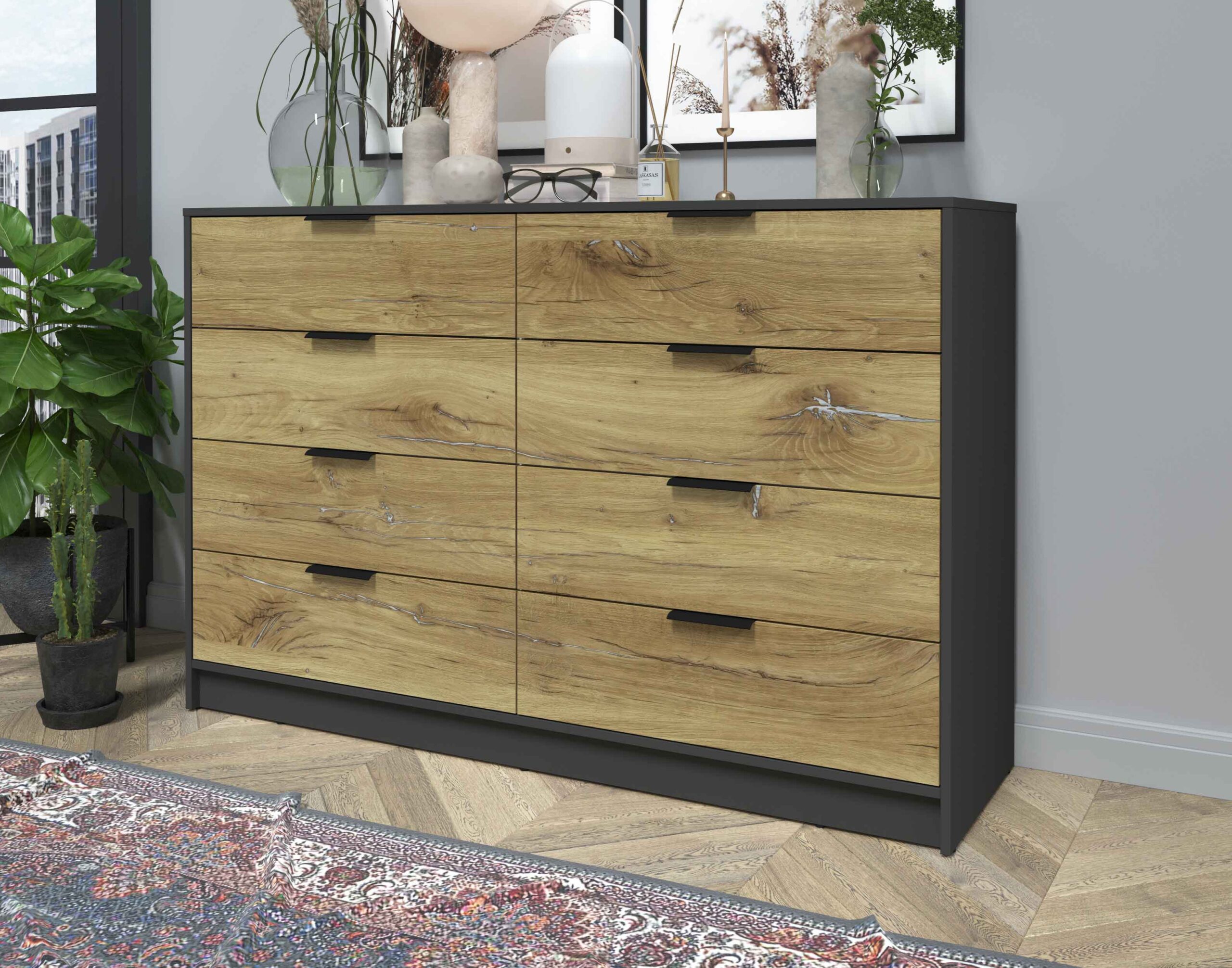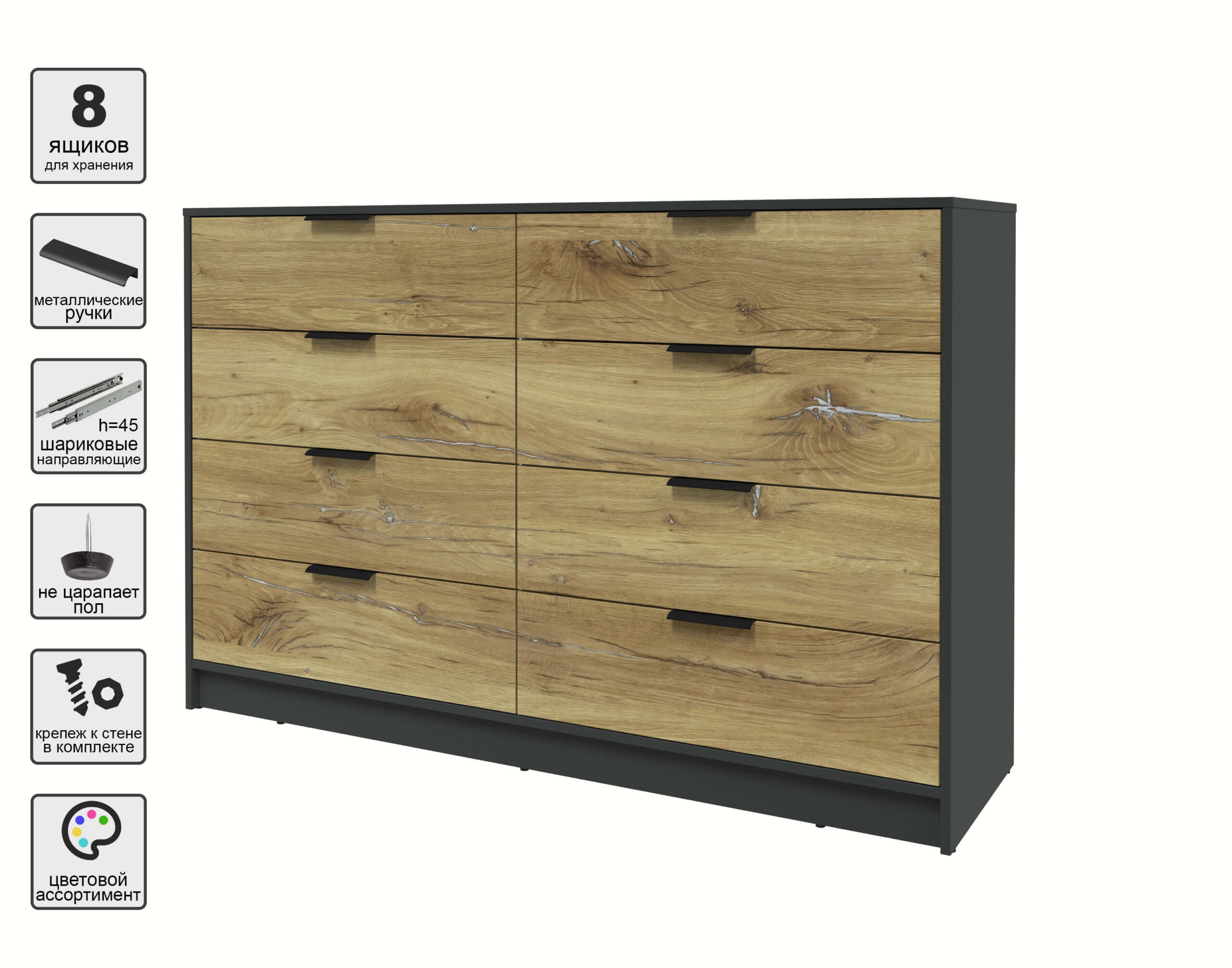 KОМОД КТ-К157 (АНТРАЦИТ ЛДСП/ ДУБ НОКС ЛДСП) Ш1565 В1020 Г451 - Yuta.by