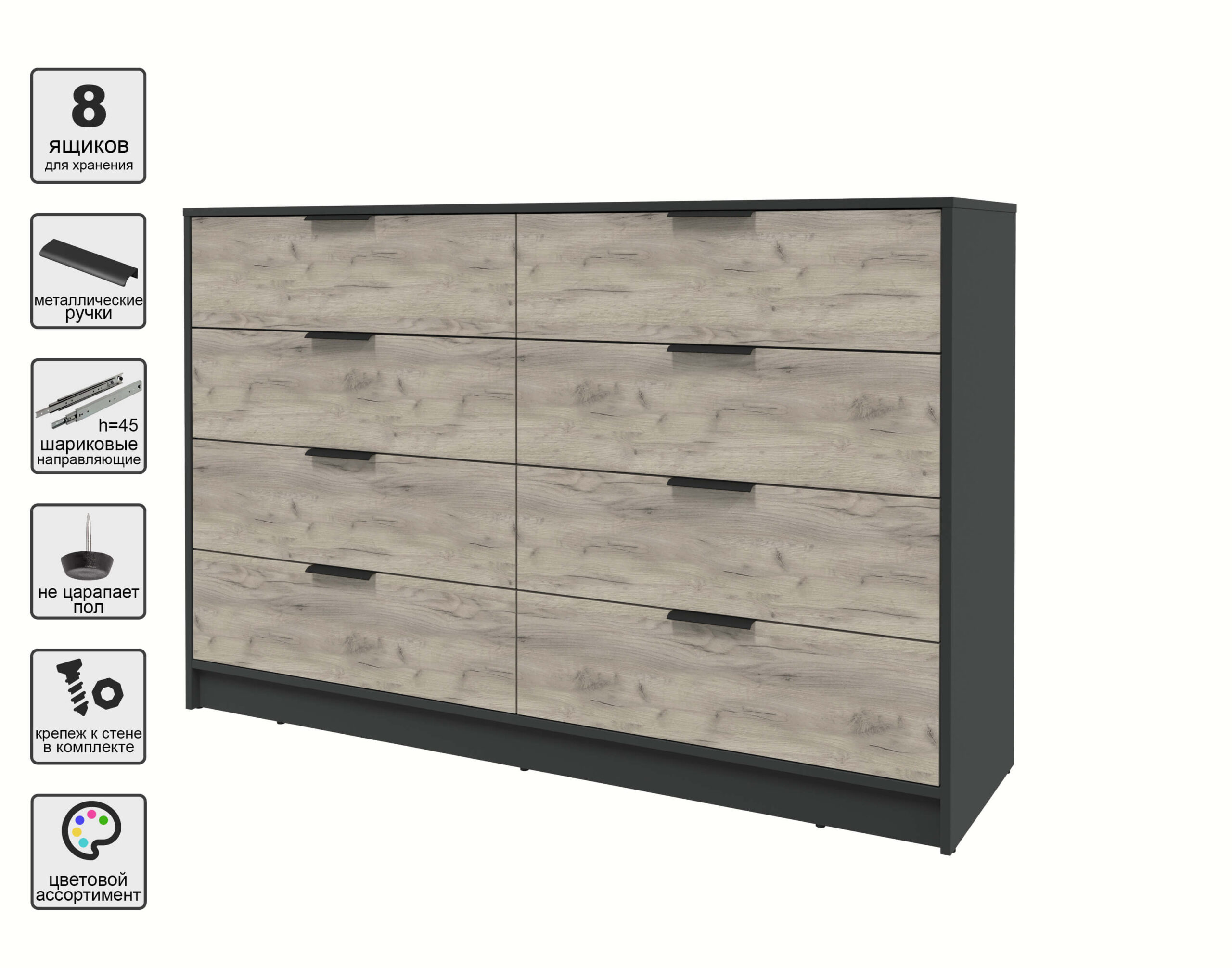 KОМОД КТ-К157 (АНТРАЦИТ ЛДСП/ ДУБ СЕРЫЙ ЛДСП) Ш1565 В1020 Г451 - Yuta.by