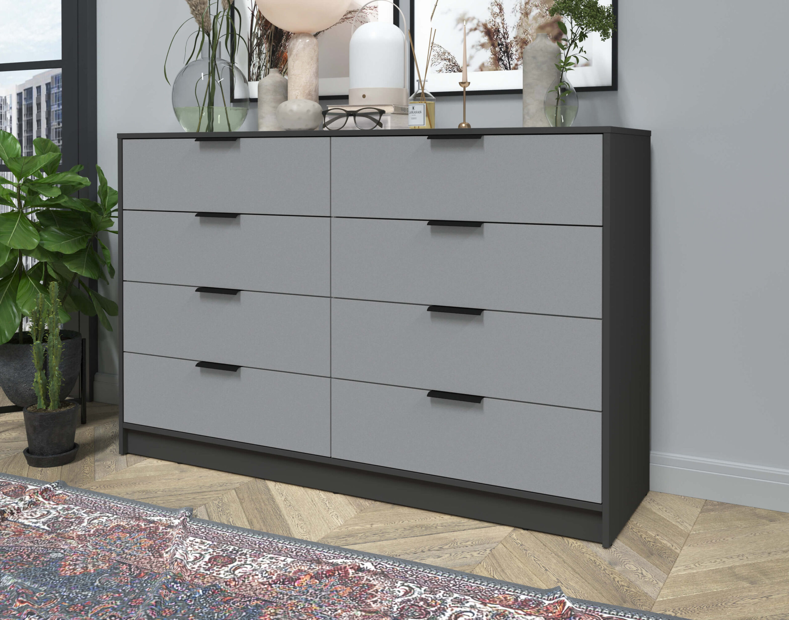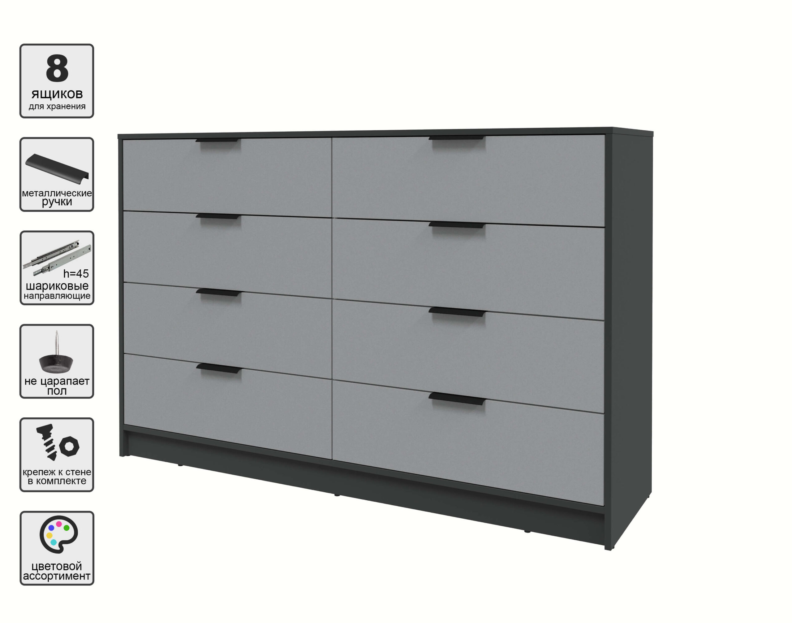 KОМОД КТ-К157 (АНТРАЦИТ ЛДСП/ СЕРЕБРО ЛДСП) Ш1565 В1020 Г451 - Yuta.by