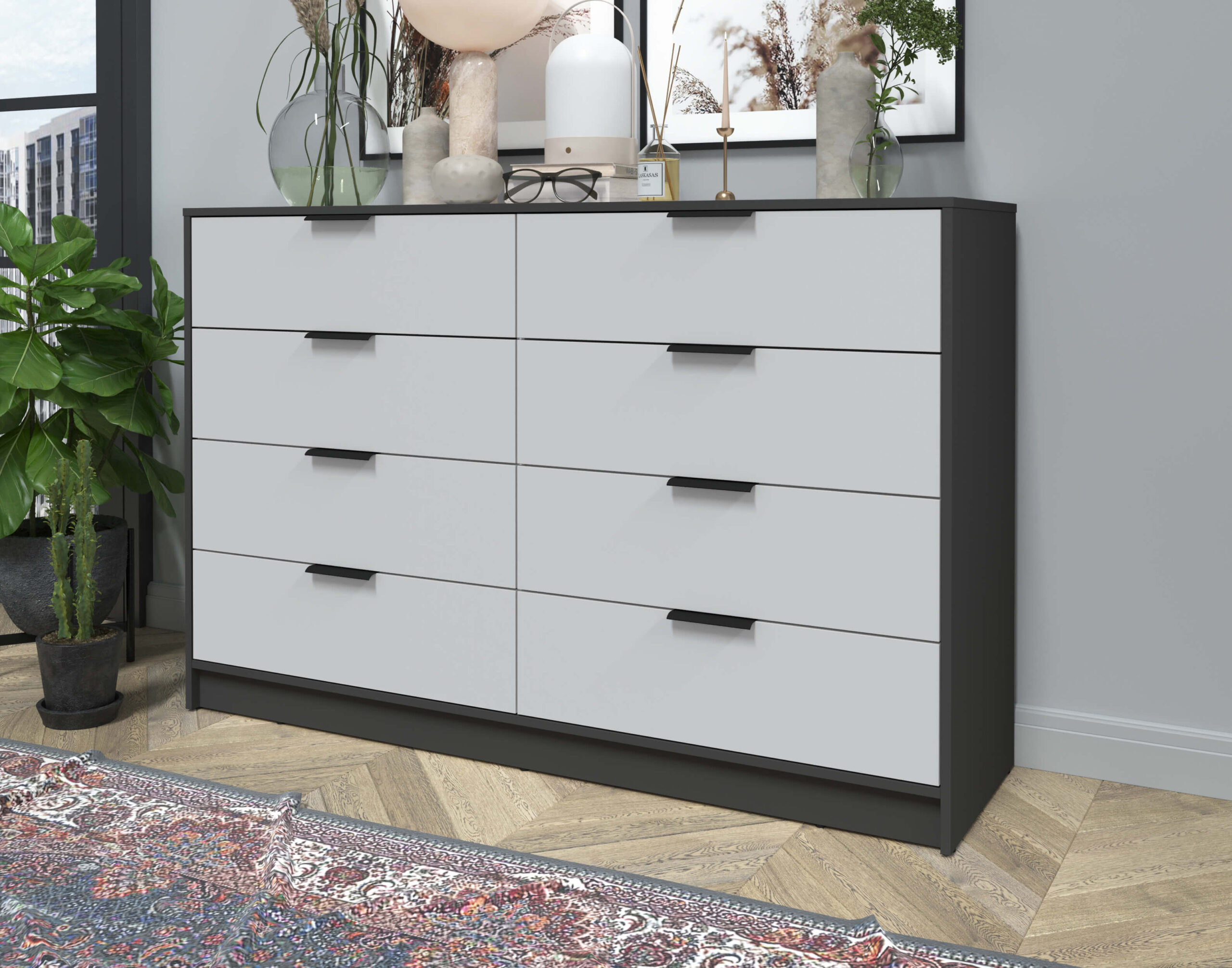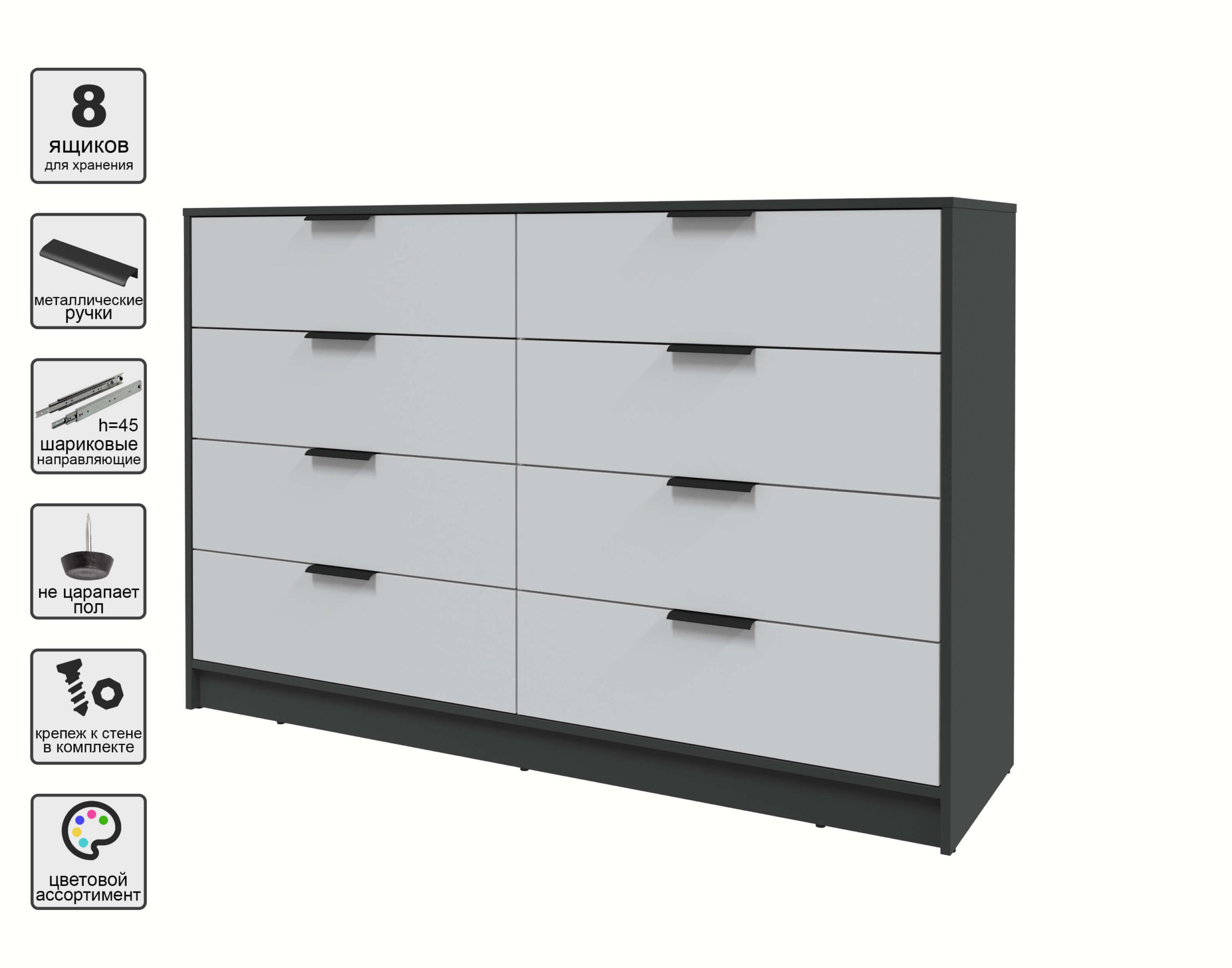 KОМОД КТ-К157 (АНТРАЦИТ ЛДСП/ СЕРЫЙ ЛДСП) Ш1565 В1020 Г451 - Yuta.by