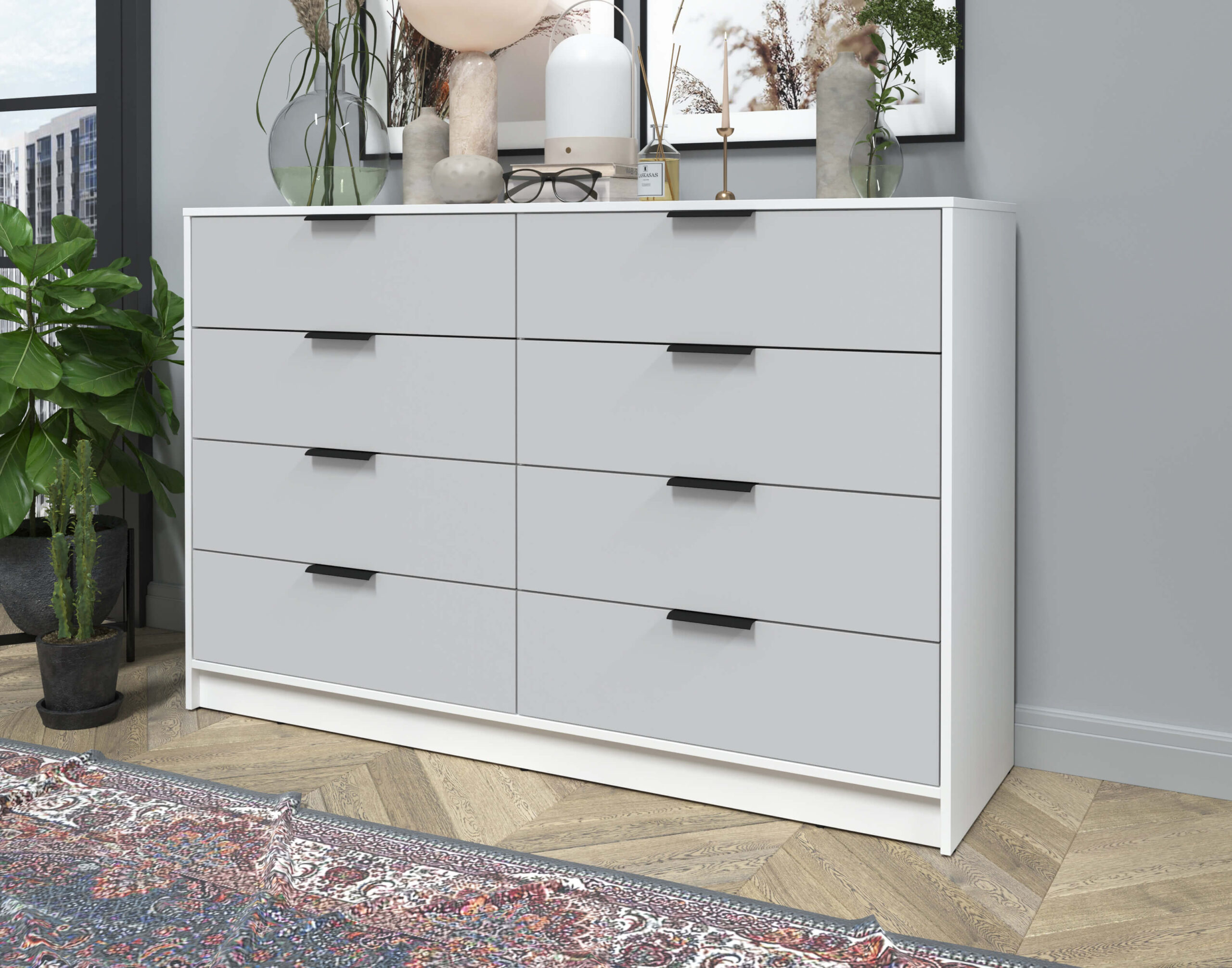 KОМОД КТ-К157 (БЕЛЫЙ ЛДСП/ СЕРЫЙ ЛДСП) Ш1565 В1020 Г451 - Yuta.by