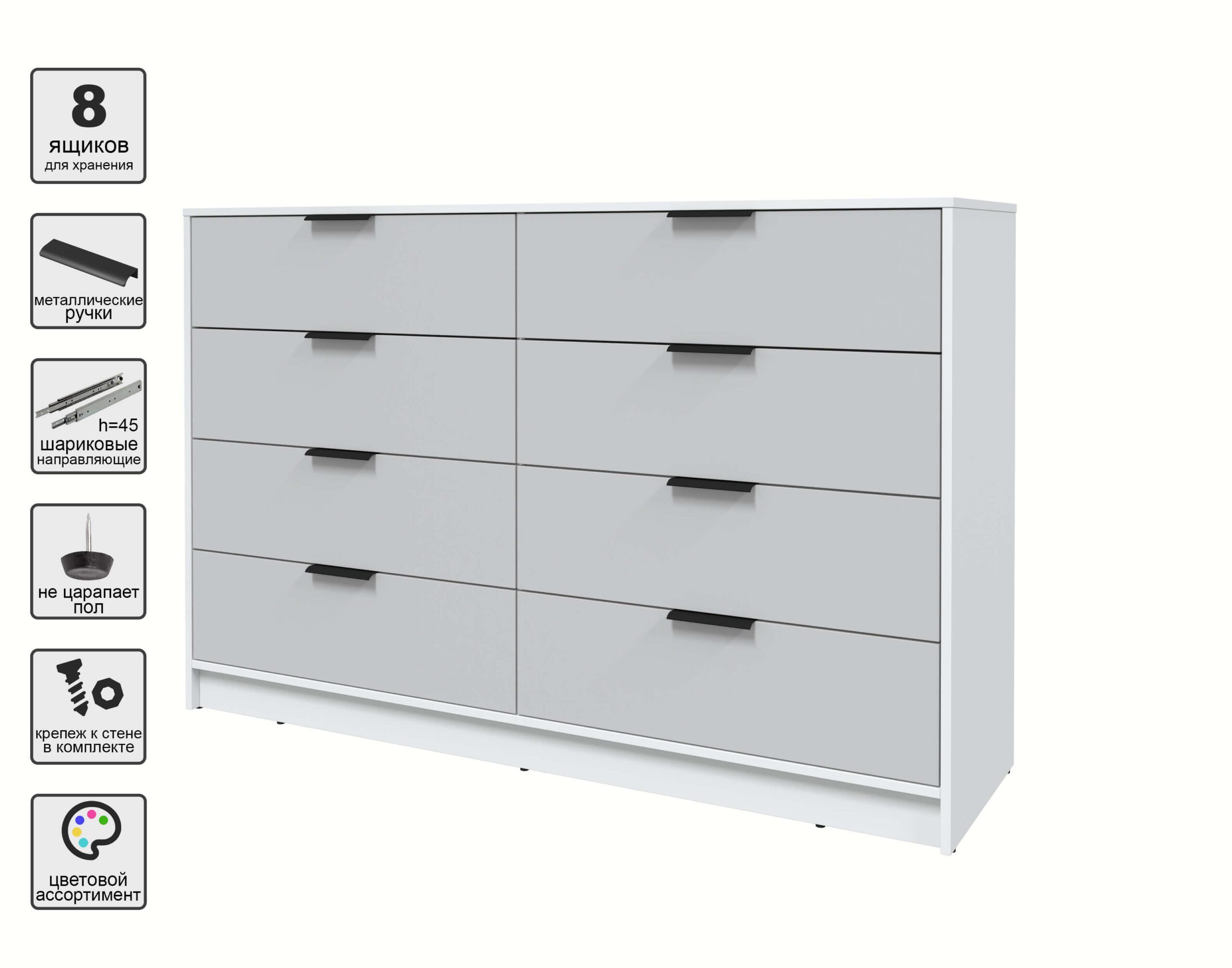 KОМОД КТ-К157 (БЕЛЫЙ ЛДСП/ СЕРЫЙ ЛДСП) Ш1565 В1020 Г451