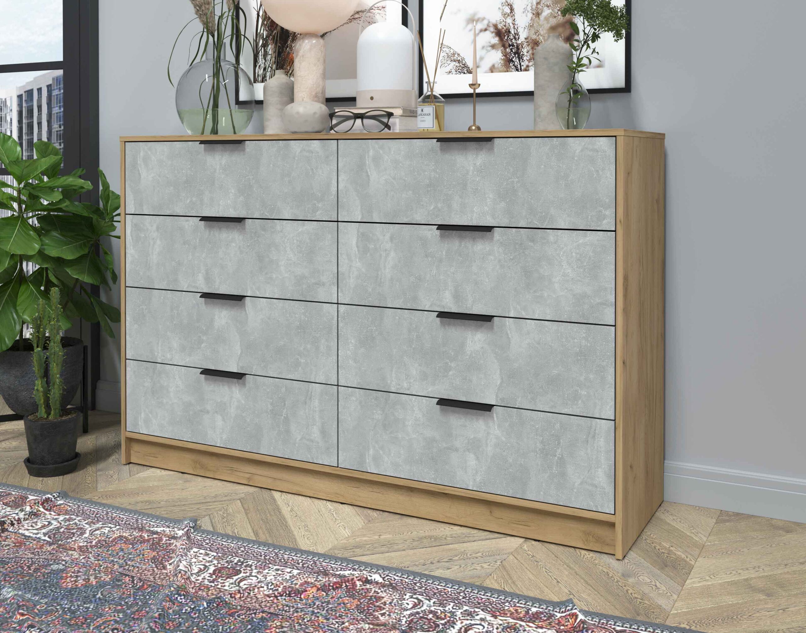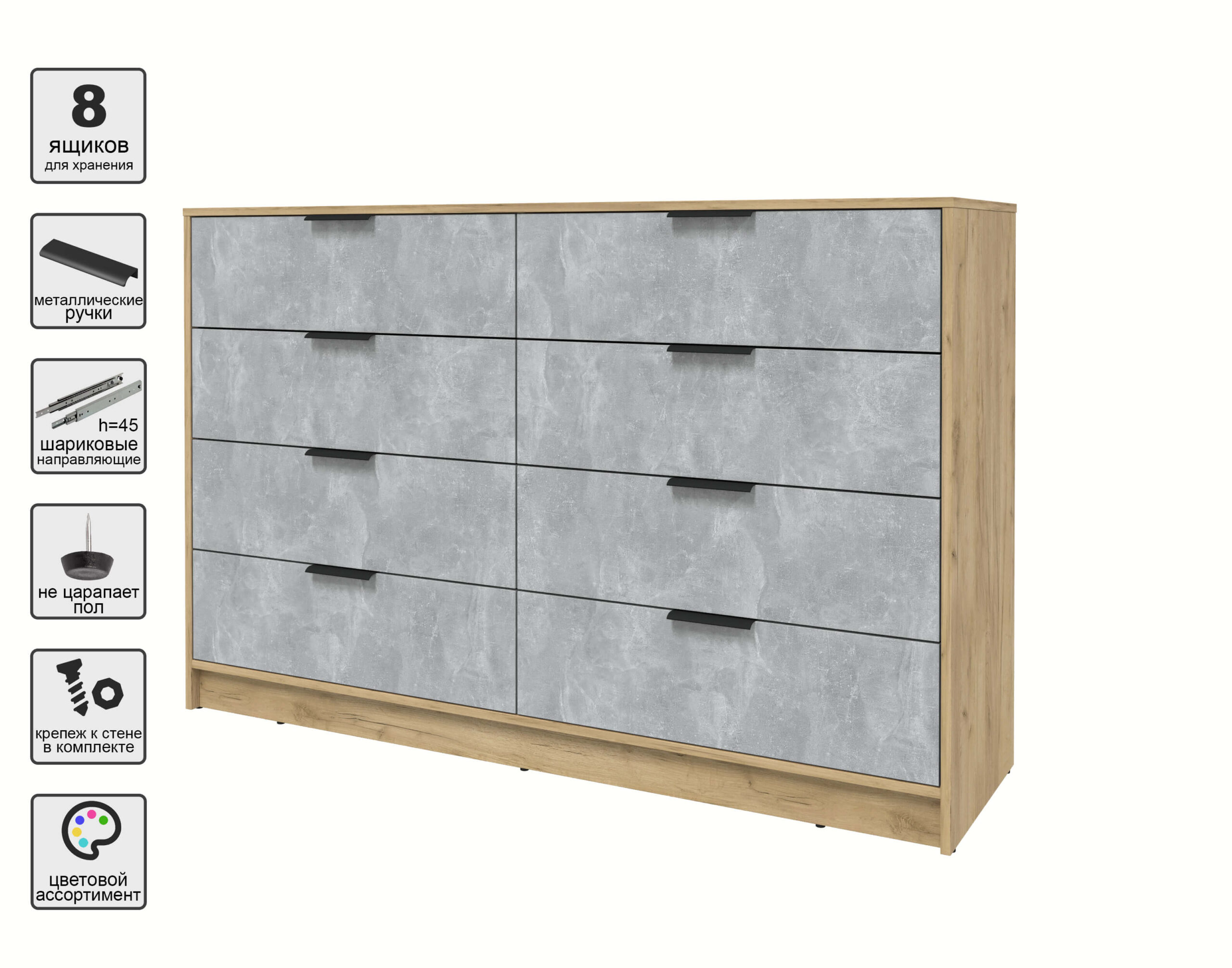 KОМОД КТ-К157 (ДУБ ЗОЛОТОЙ ЛДСП/ БЕТОН ЛДСП) Ш1565 В1020 Г451 - Yuta.by