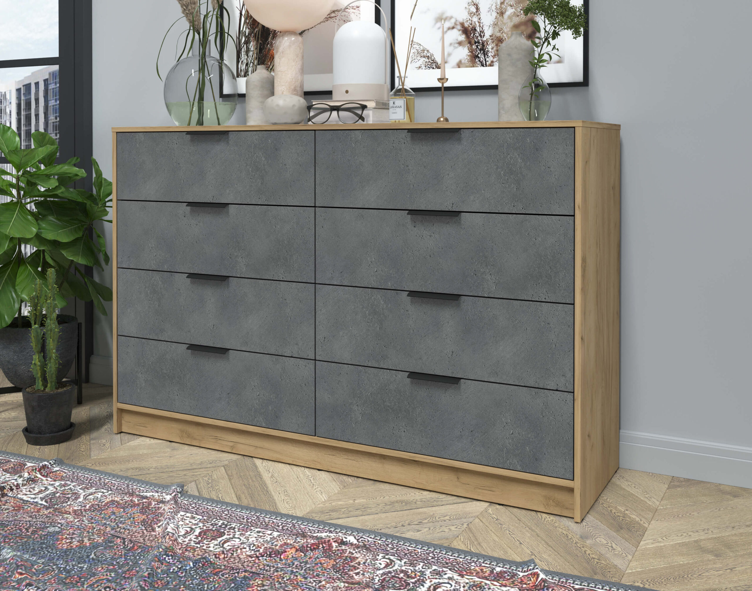 KОМОД КТ-К157 (ДУБ ЗОЛОТОЙ ЛДСП/ БЕТОН ПОРТЛЕНД ЛДСП) Ш1565 В1020 Г451 - Yuta.by
