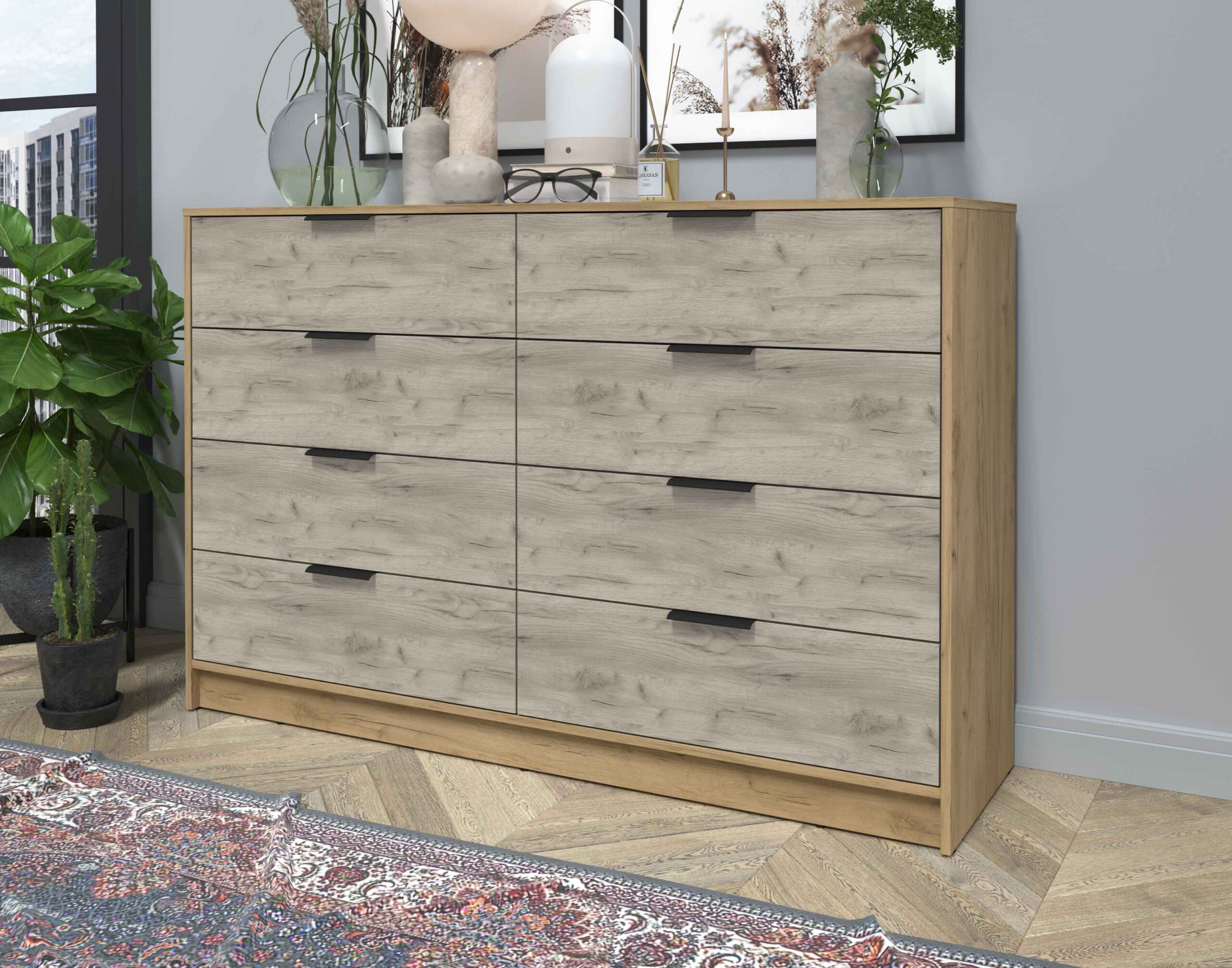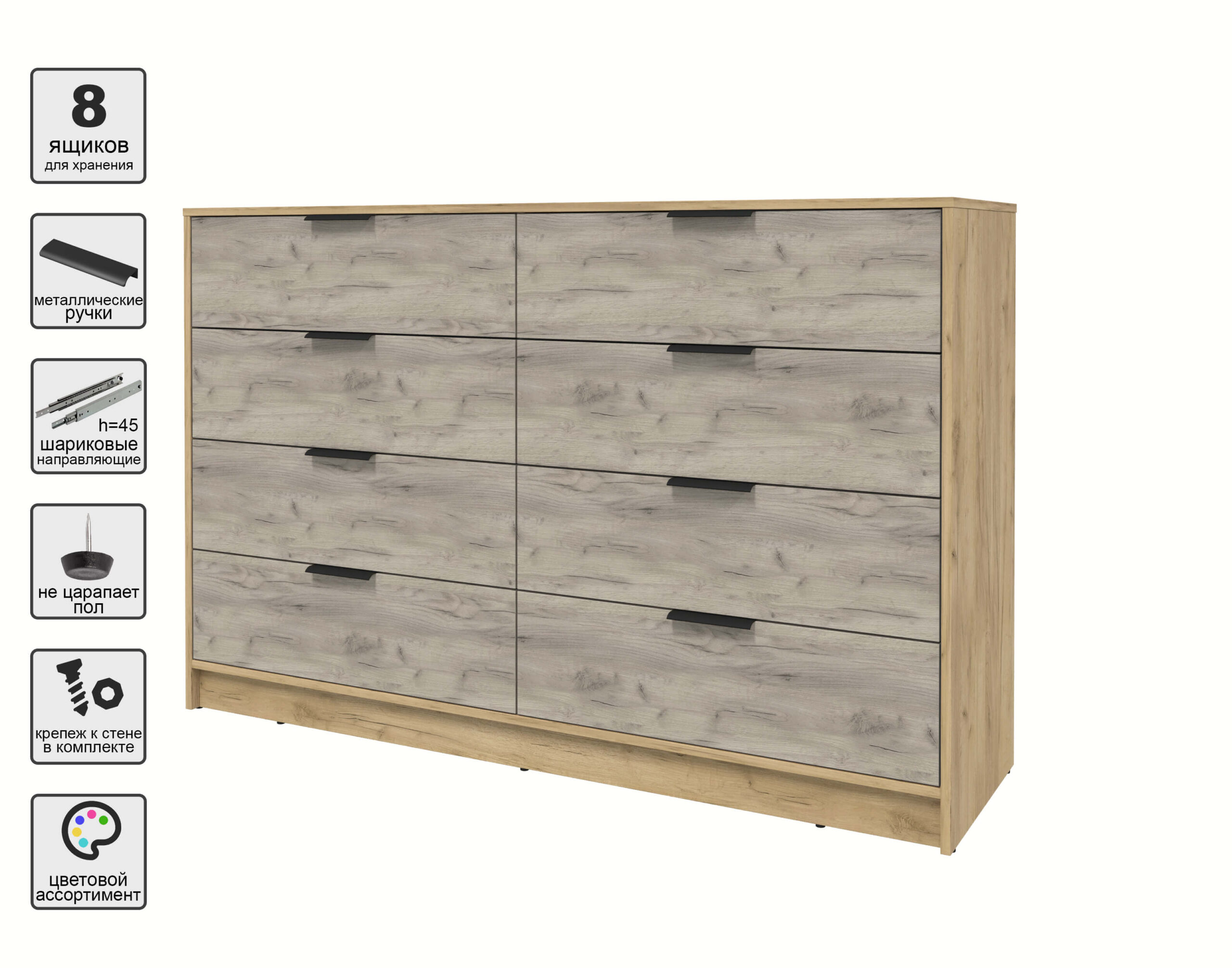 KОМОД КТ-К157 (ДУБ ЗОЛОТОЙ ЛДСП/ ДУБ СЕРЫЙ ЛДСП) Ш1565 В1020 Г451 - Yuta.by