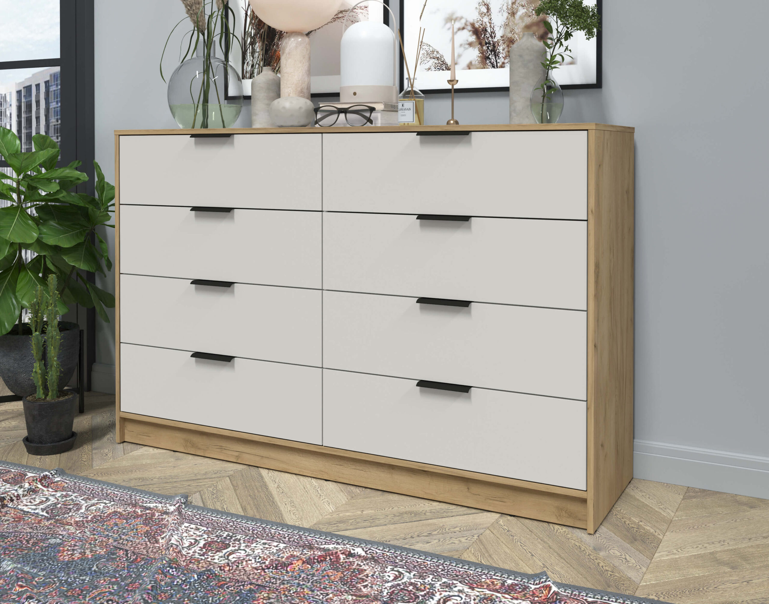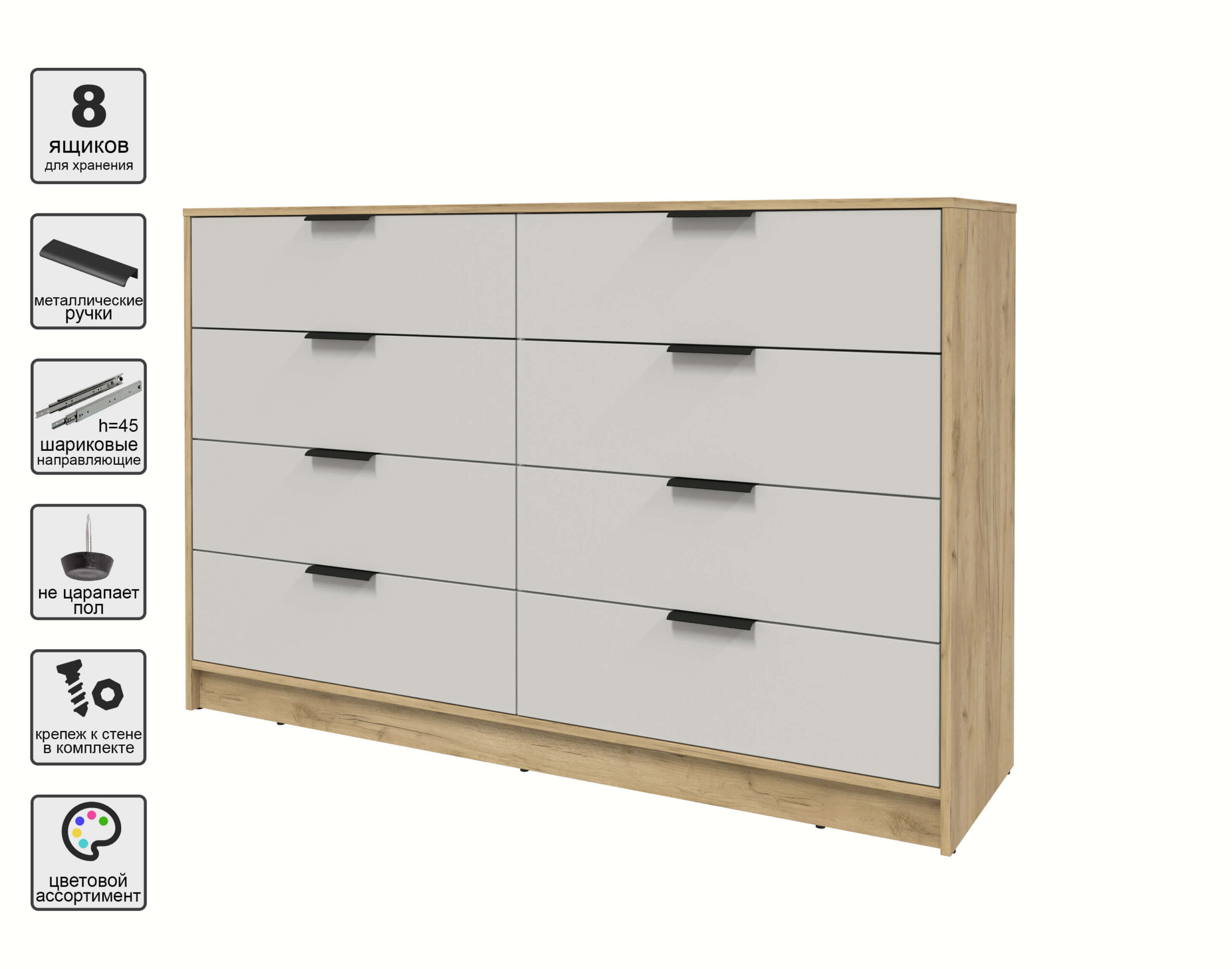 KОМОД КТ-К157 (ДУБ ЗОЛОТОЙ ЛДСП/ ПЕРСИДСКИЙ ЖЕМЧУГ ЛДСП) Ш1565 В1020 Г451 - Yuta.by