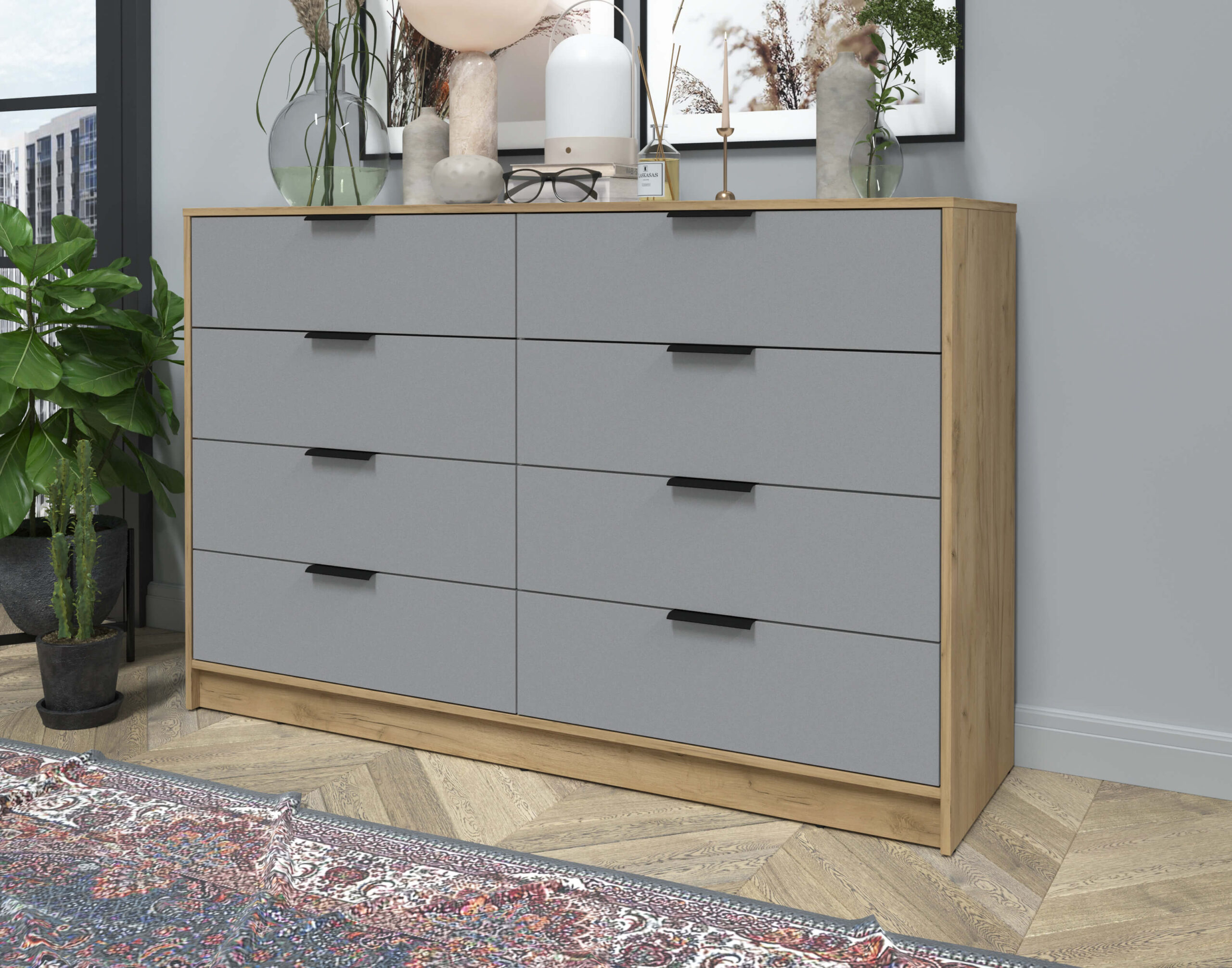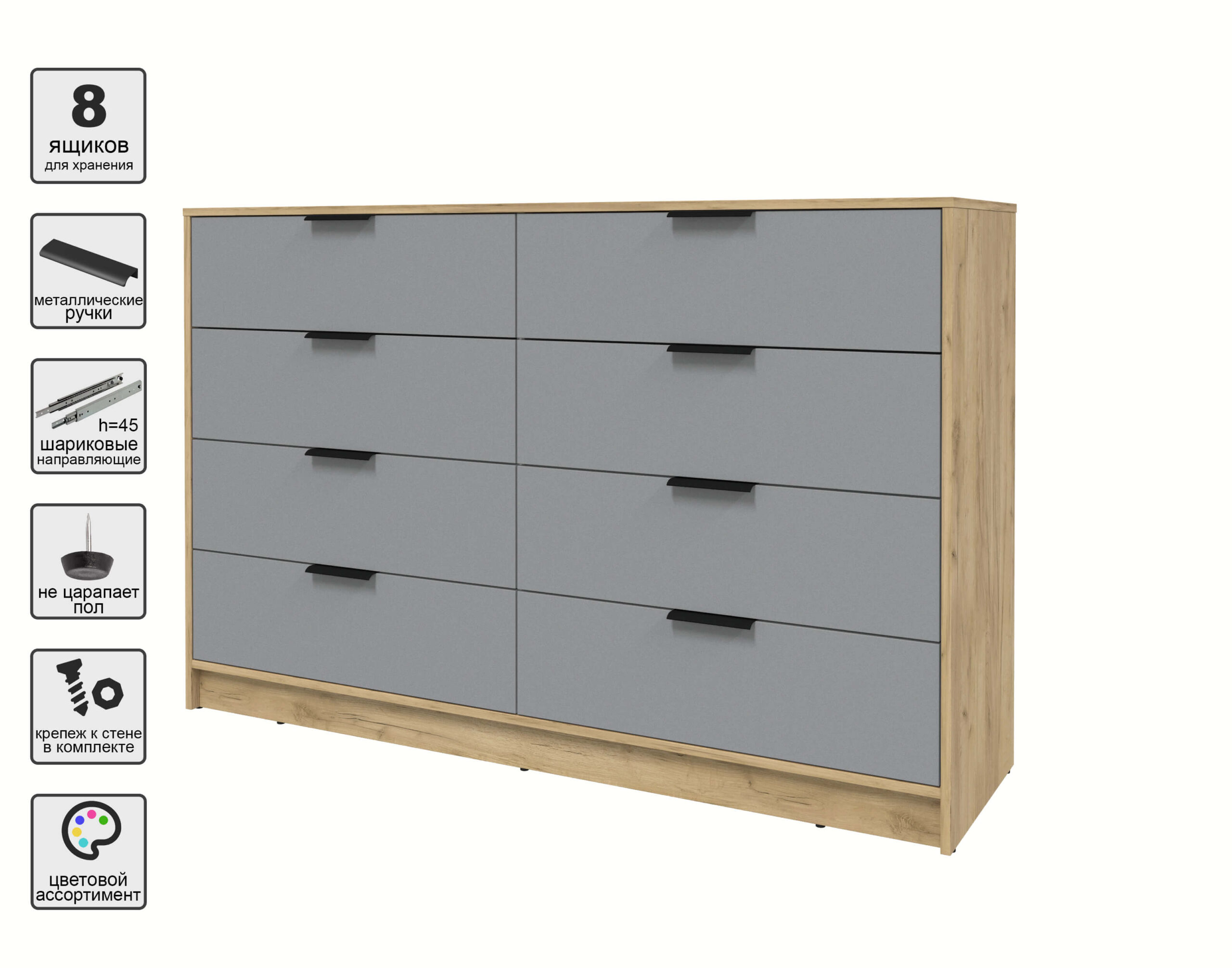 KОМОД КТ-К157 (ДУБ ЗОЛОТОЙ ЛДСП/ СЕРЕБРО ЛДСП) Ш1565 В1020 Г451 - Yuta.by