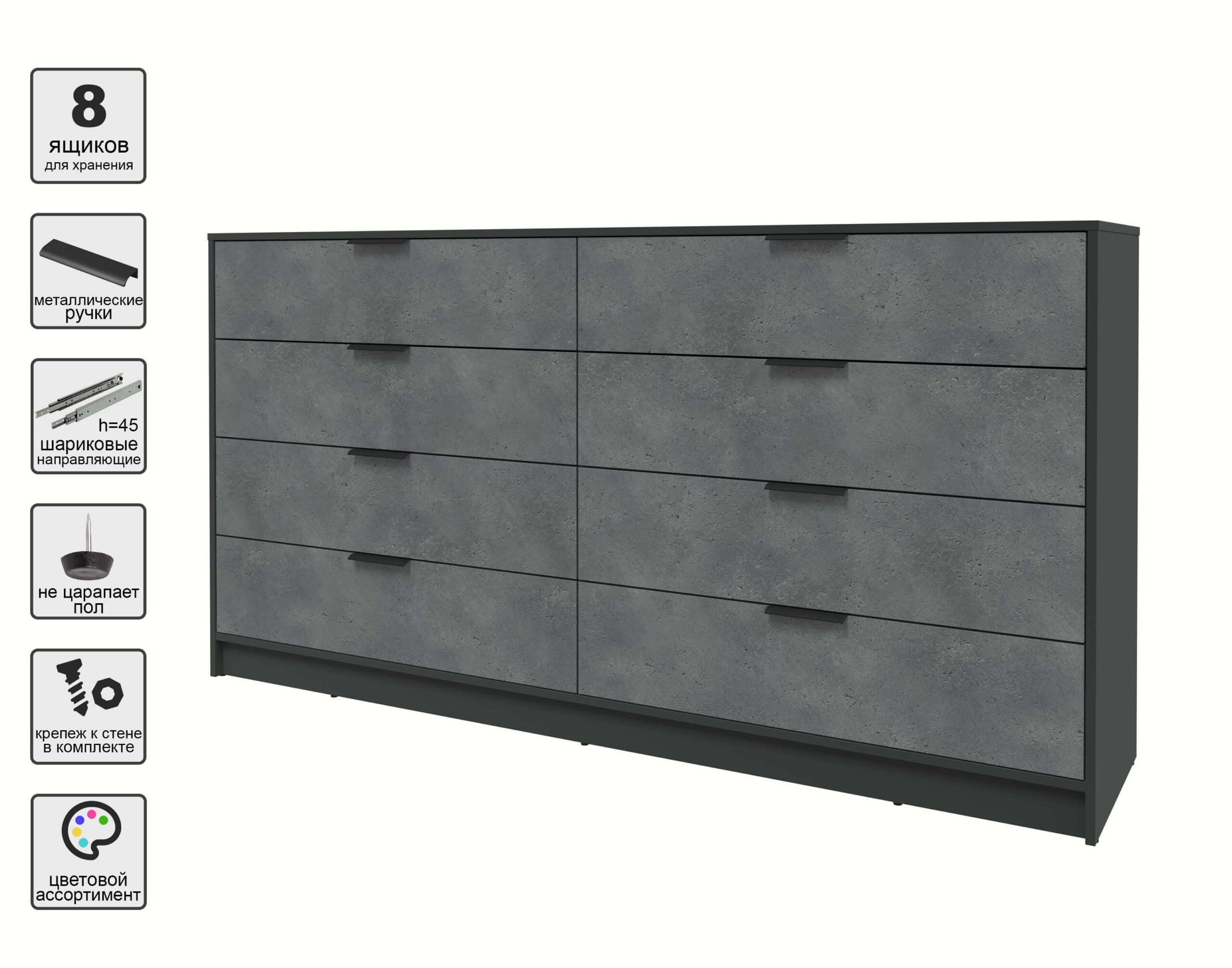 KОМОД КТ-К197 (АНТРАЦИТ ЛДСП/ БЕТОН ПОРТЛЕНД ЛДСП) Ш1965 В1020 Г451 - Yuta.by