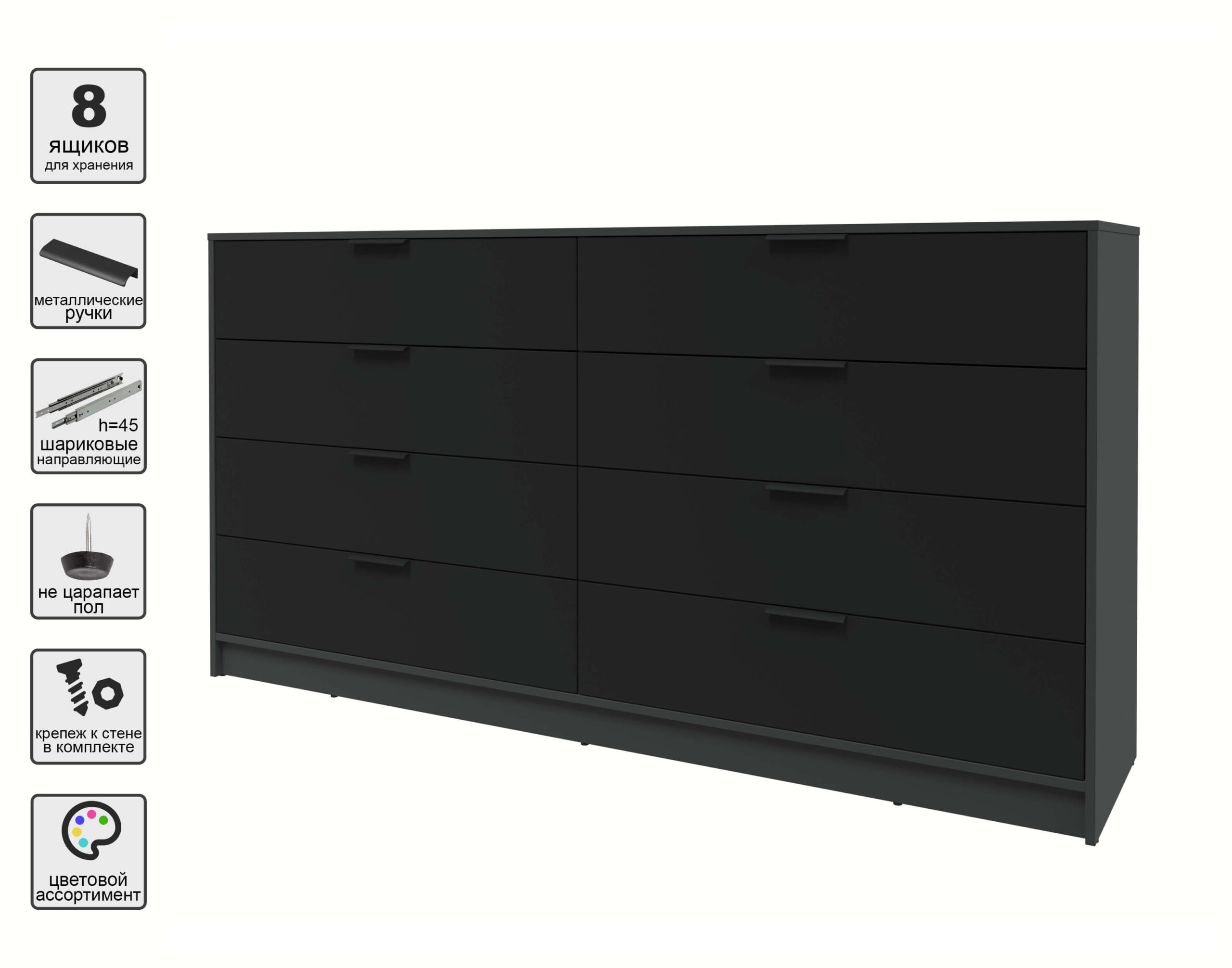KОМОД КТ-К197 (АНТРАЦИТ ЛДСП/ ЧЕРНЫЙ ЛДСП) Ш1965 В1020 Г451 - Yuta.by